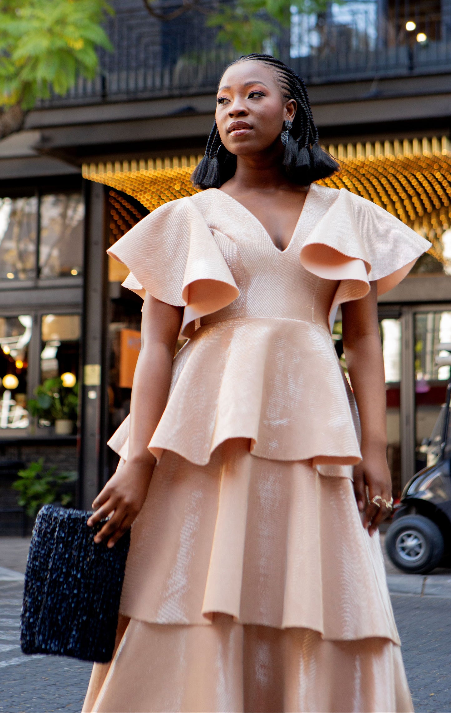 Onkgopotse Mashika, founder of Angalia Apparel, left accounting to pursue her passion for fashion. Her luxury brand blends modern African design with elegant silhouettes, empowering bold women to feel confident and stand out.
