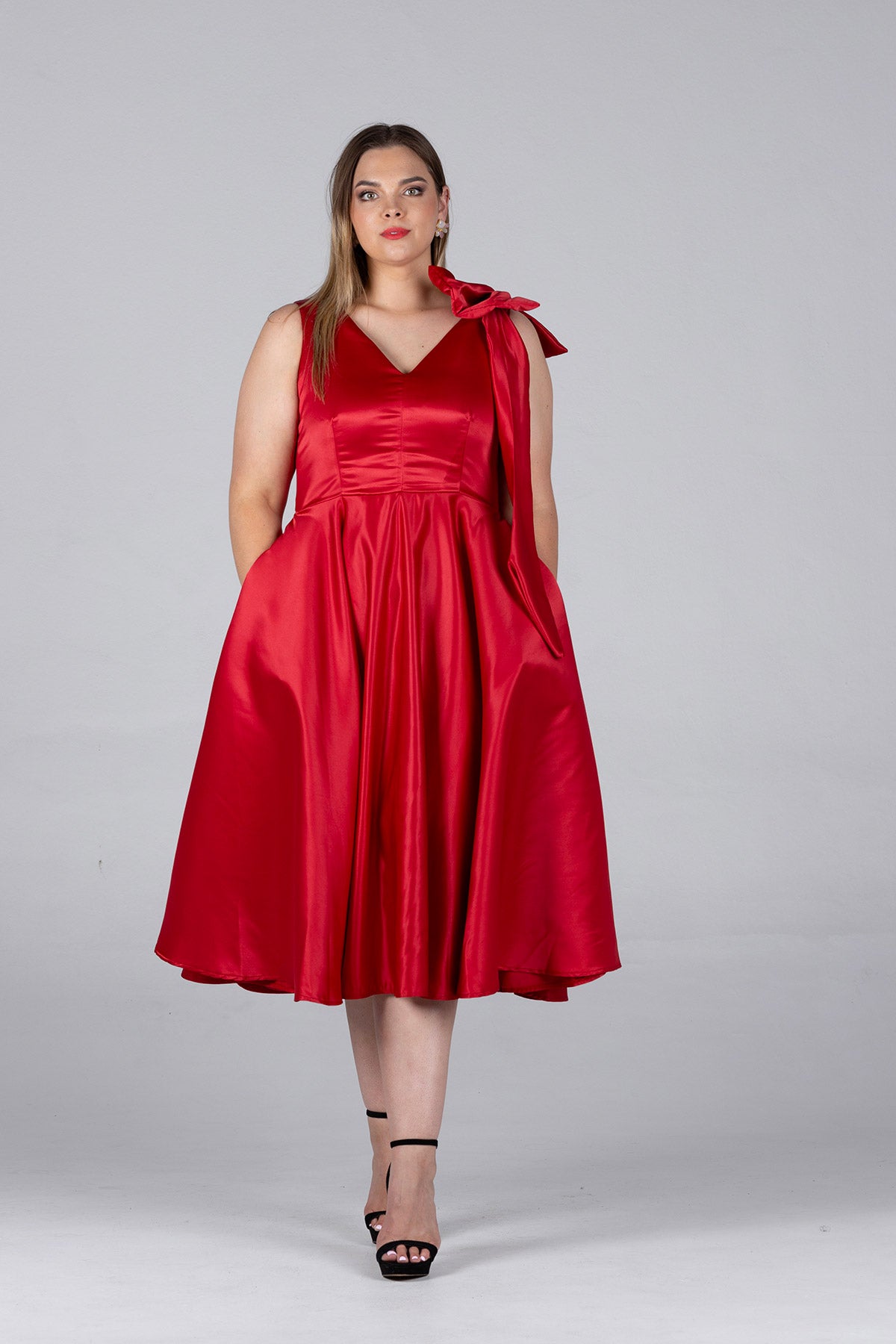 Beautiful design and workmanship! The cut is perfectly fitted on the top with a high princess waistline and matching belt. The skirt is flared and adorable. And the fun part - two side pockets! You can accessorize for the office or throw on tekkies for a casual look. Love it!