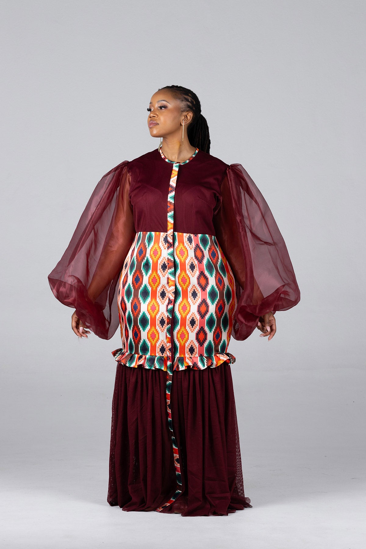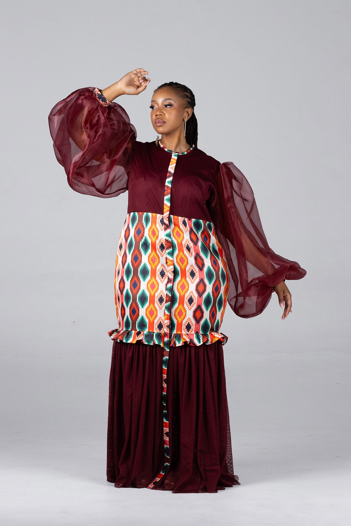 Frida Blue/Red Ankara Maxi Frilled Naomi Dress