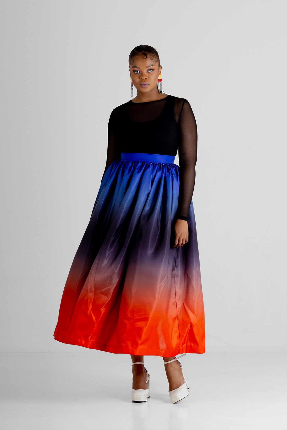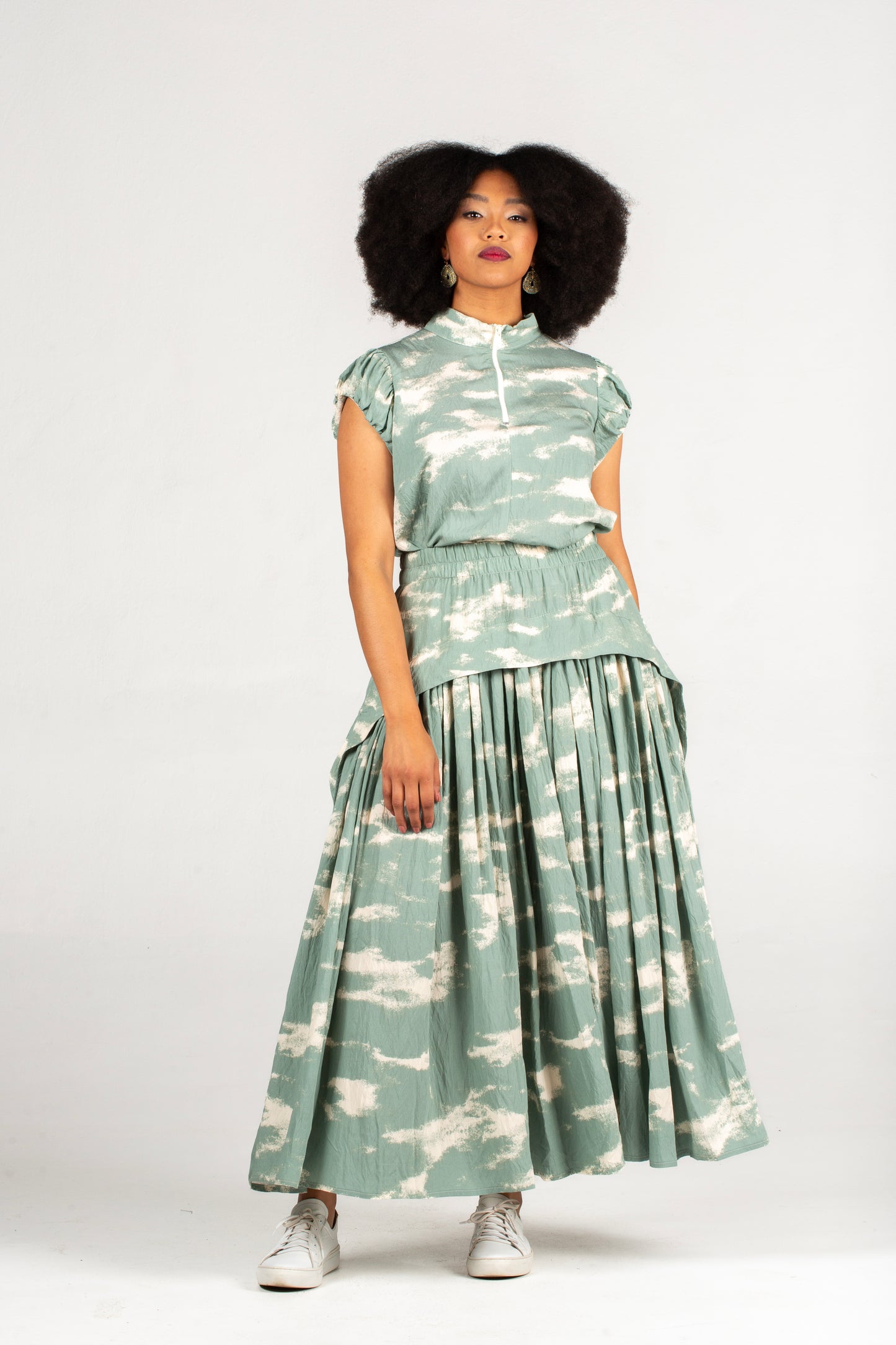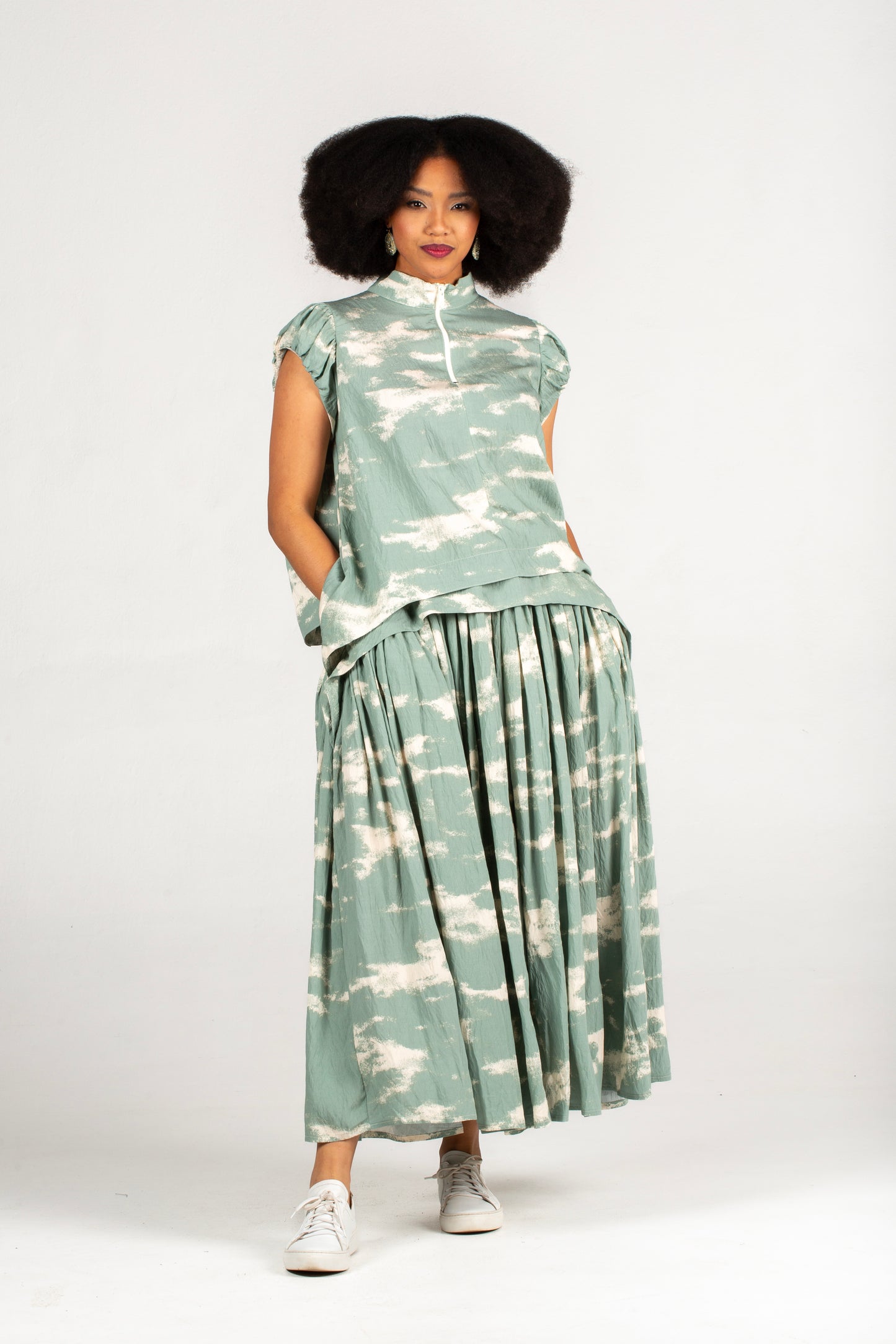 Colleen Eitzen Sage Cloud Print Rayon Cat Skirt