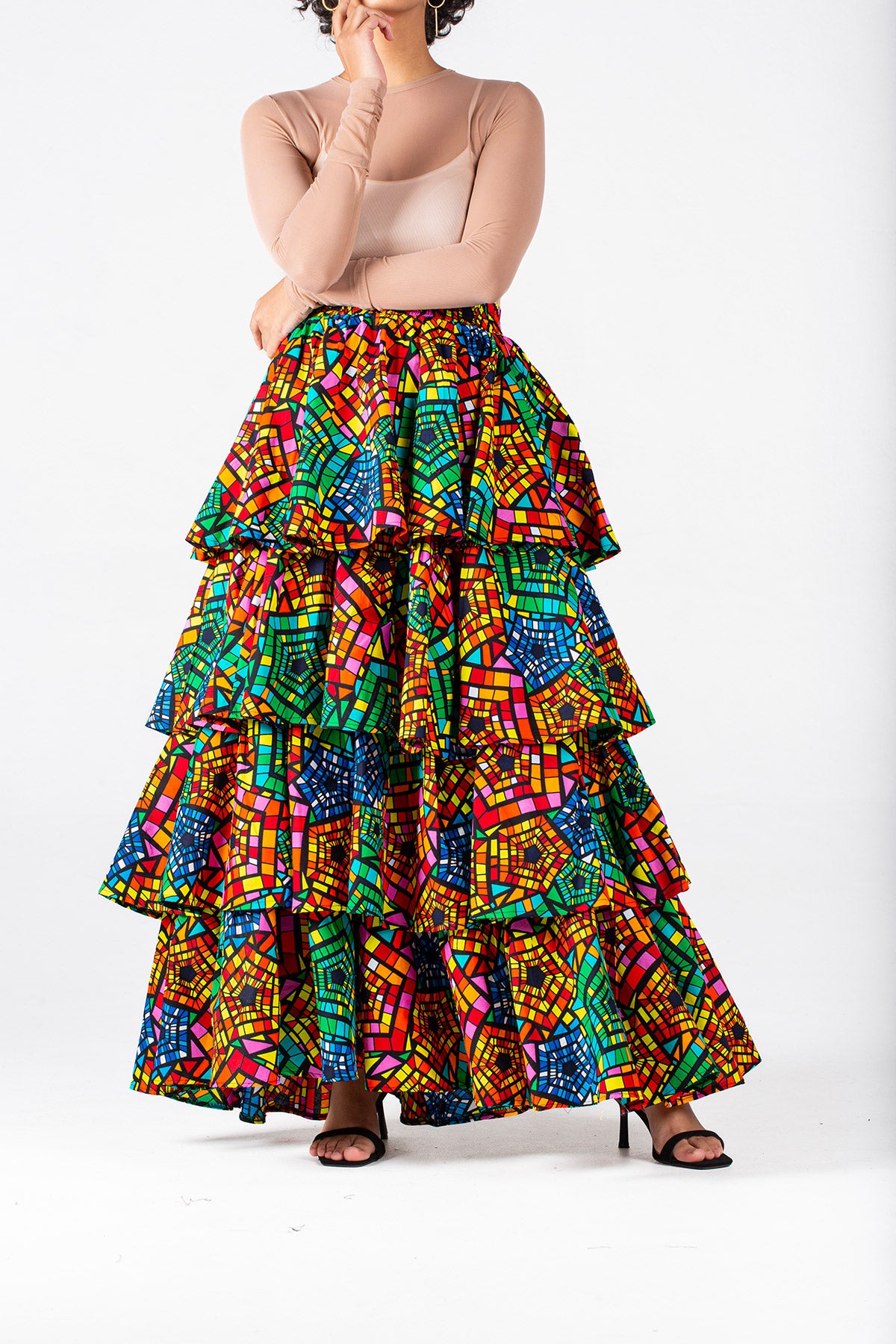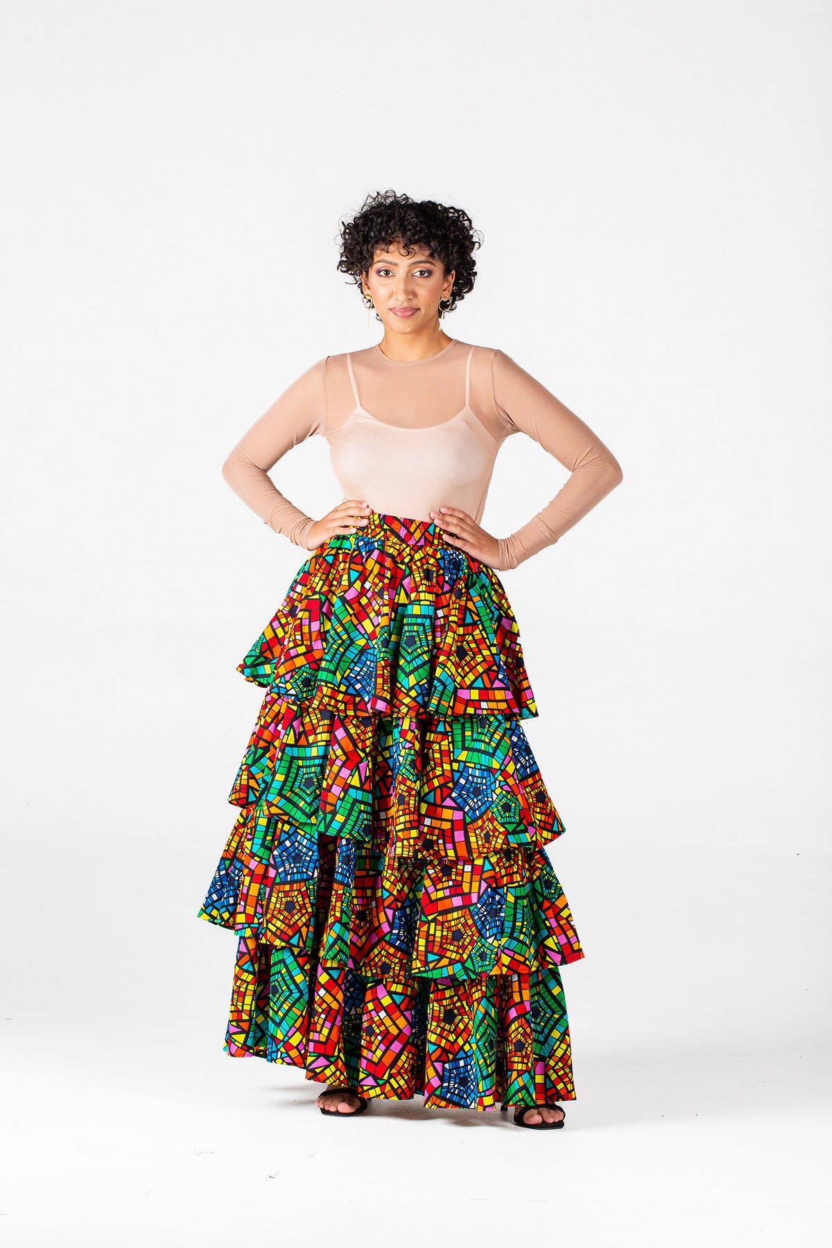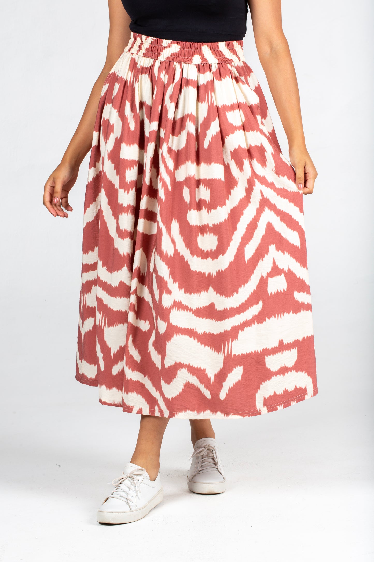 Colleen Eitzen Rust Amalfi Print Rayon Milli Skirt