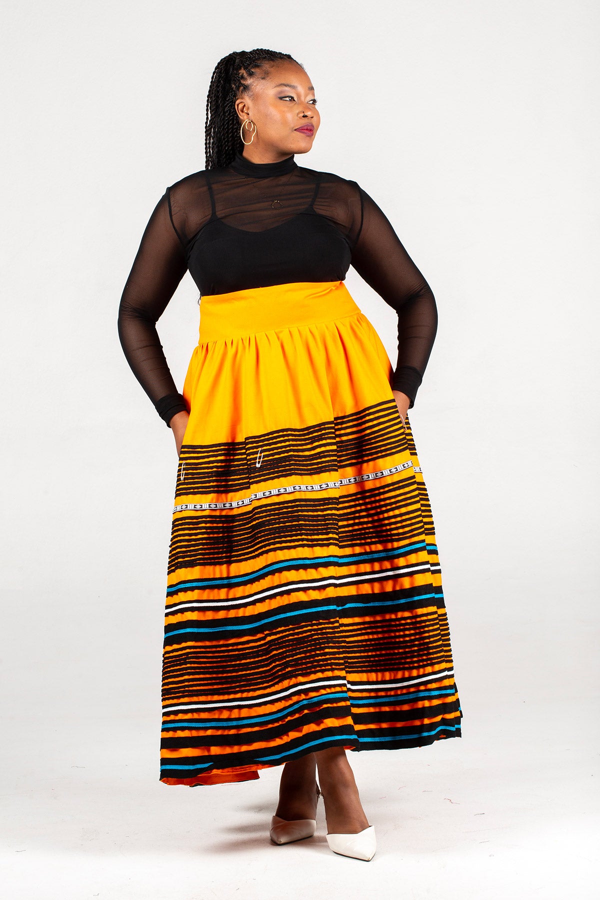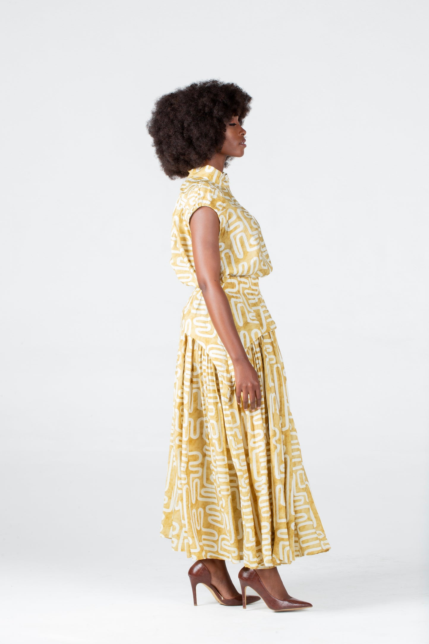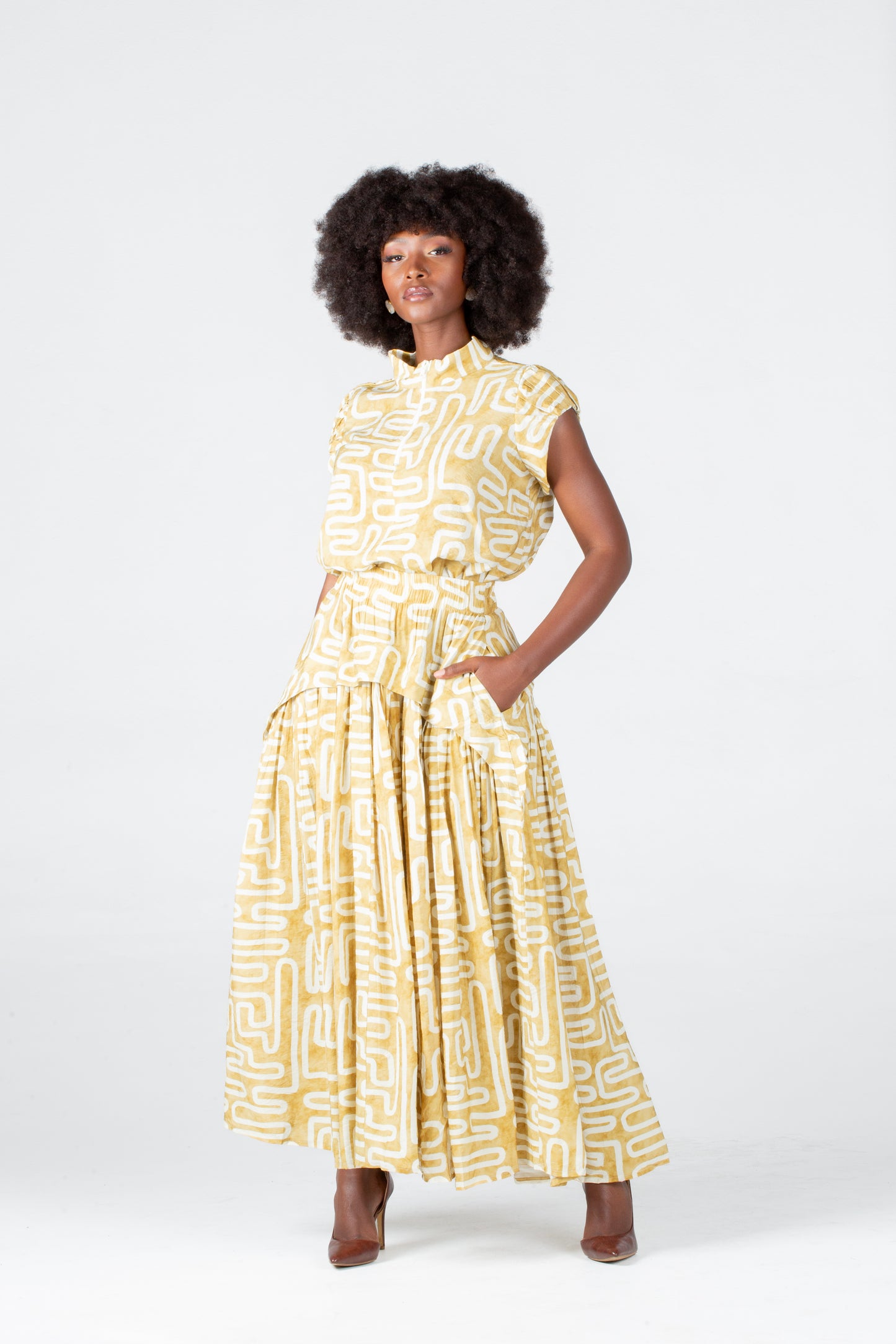 Colleen Eitzen Gold Geometric Print Cat Skirt