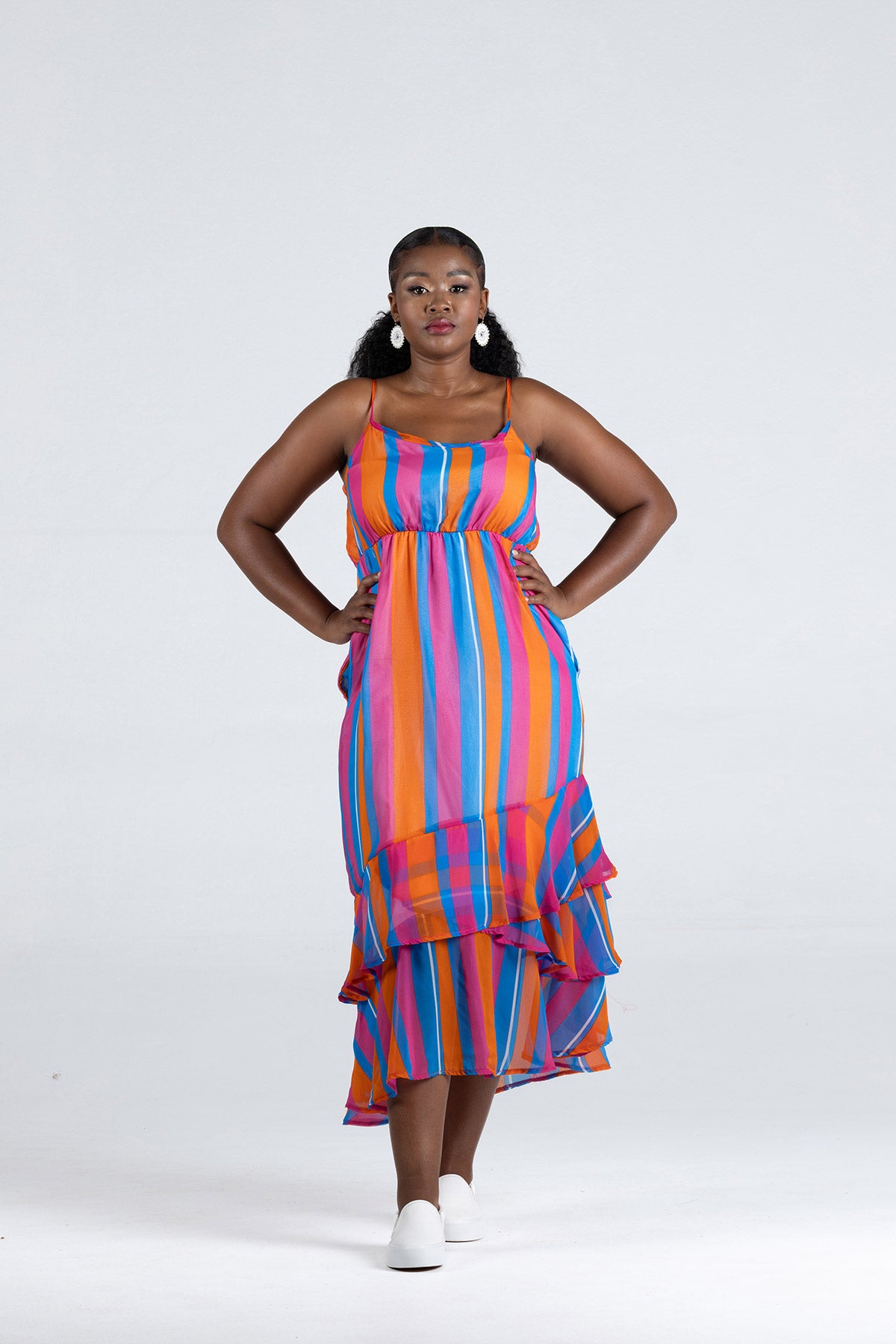 Frida Brown/Stone Maxi Frilled Naomi Dress