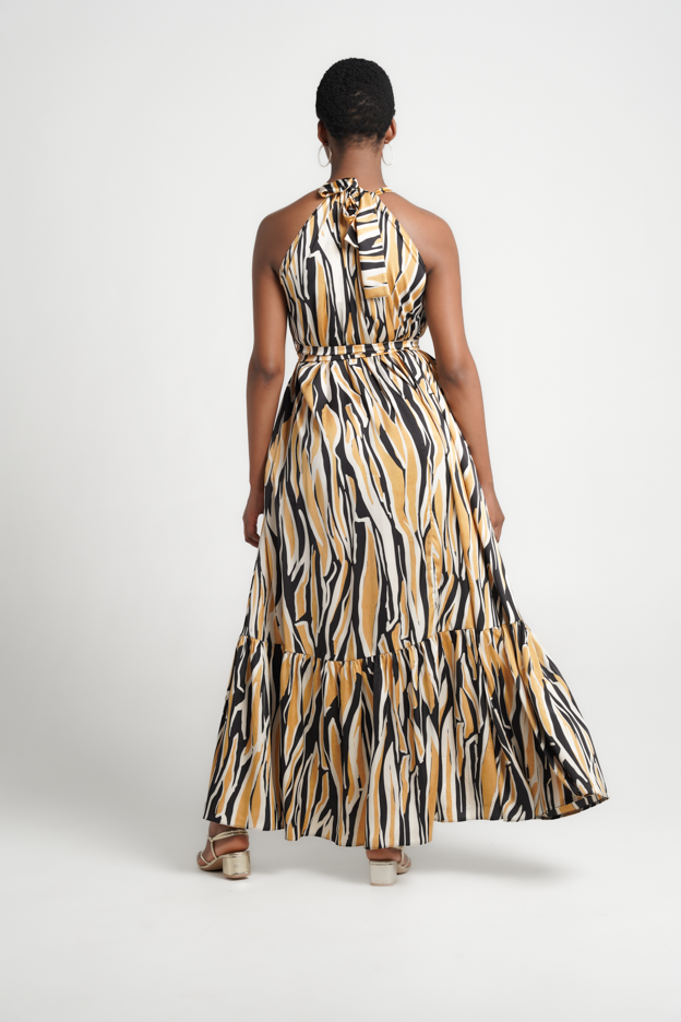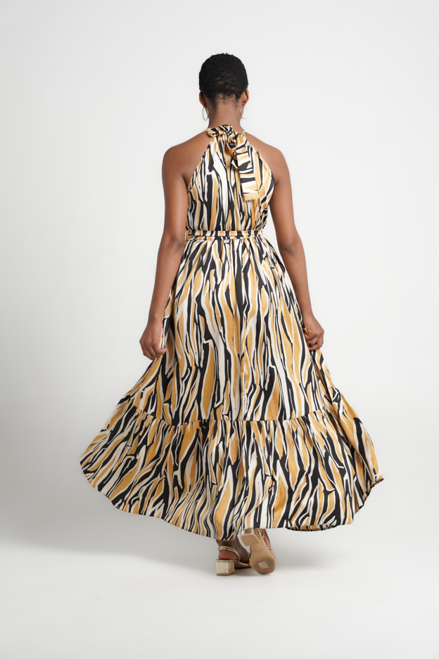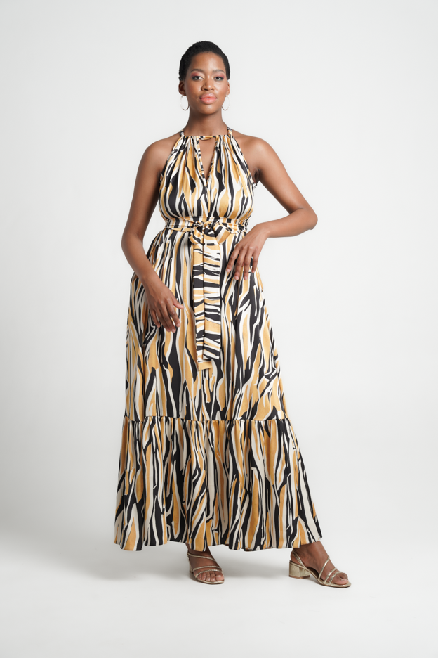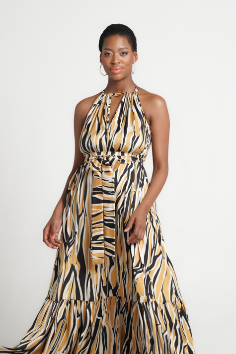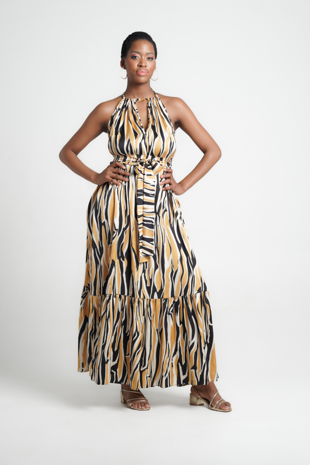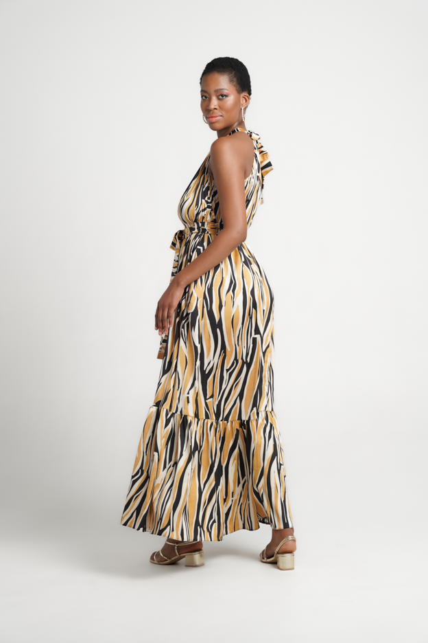 The De Chine Frill Dress is a design masterpiece. It has a clever one size fits all design for sizes 28 (XXS) to 52 (8XL). It has adjustable ties around the neck and waist that can be tied various ways, and the dress itself can be worn numerous different ways so that you can personalise your look.