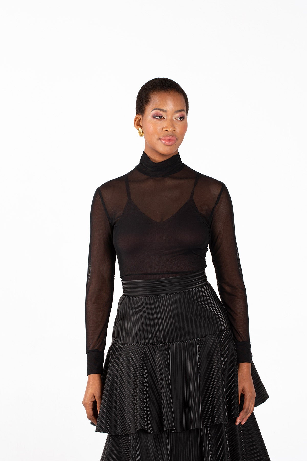 Fluidity Turtle Neck Mesh Top
