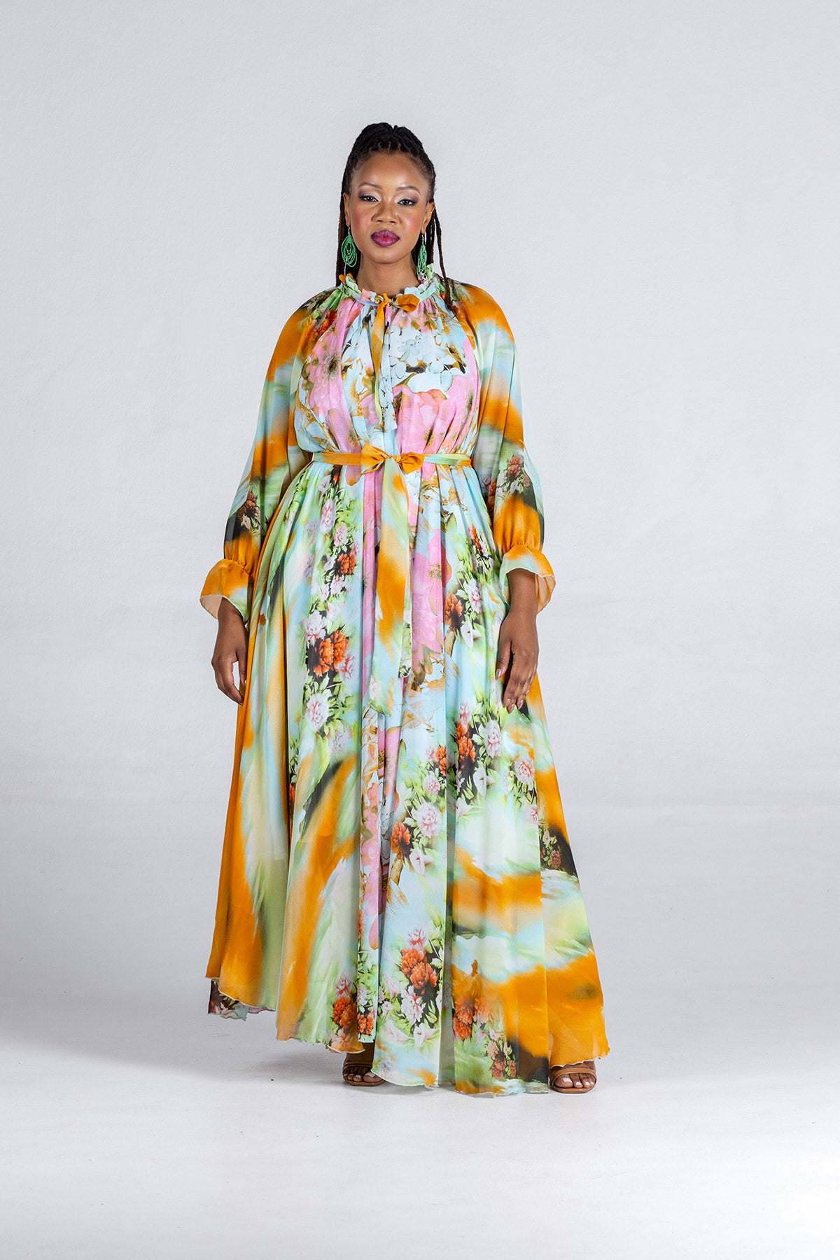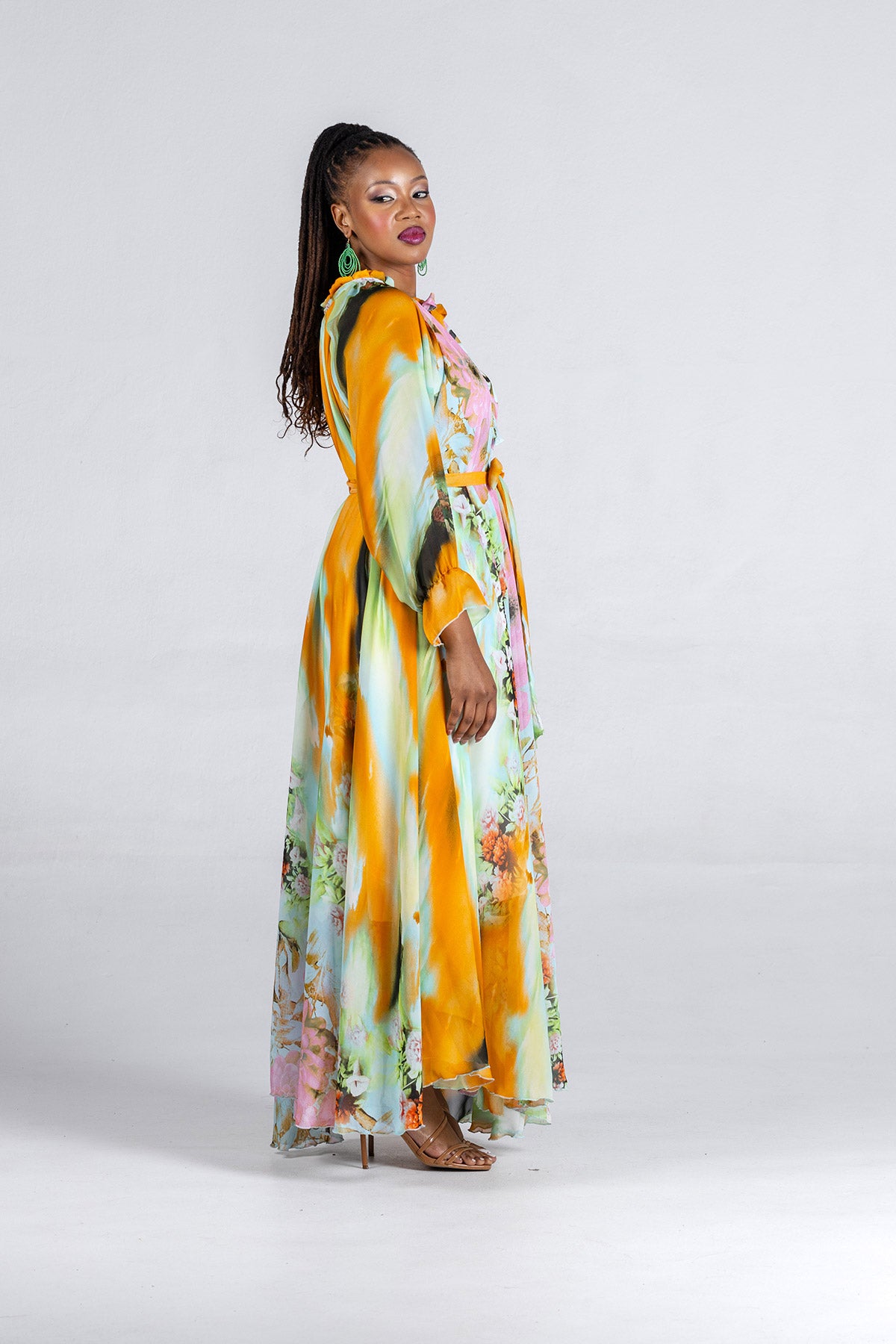 Frida Brown/Stone Maxi Frilled Naomi Dress