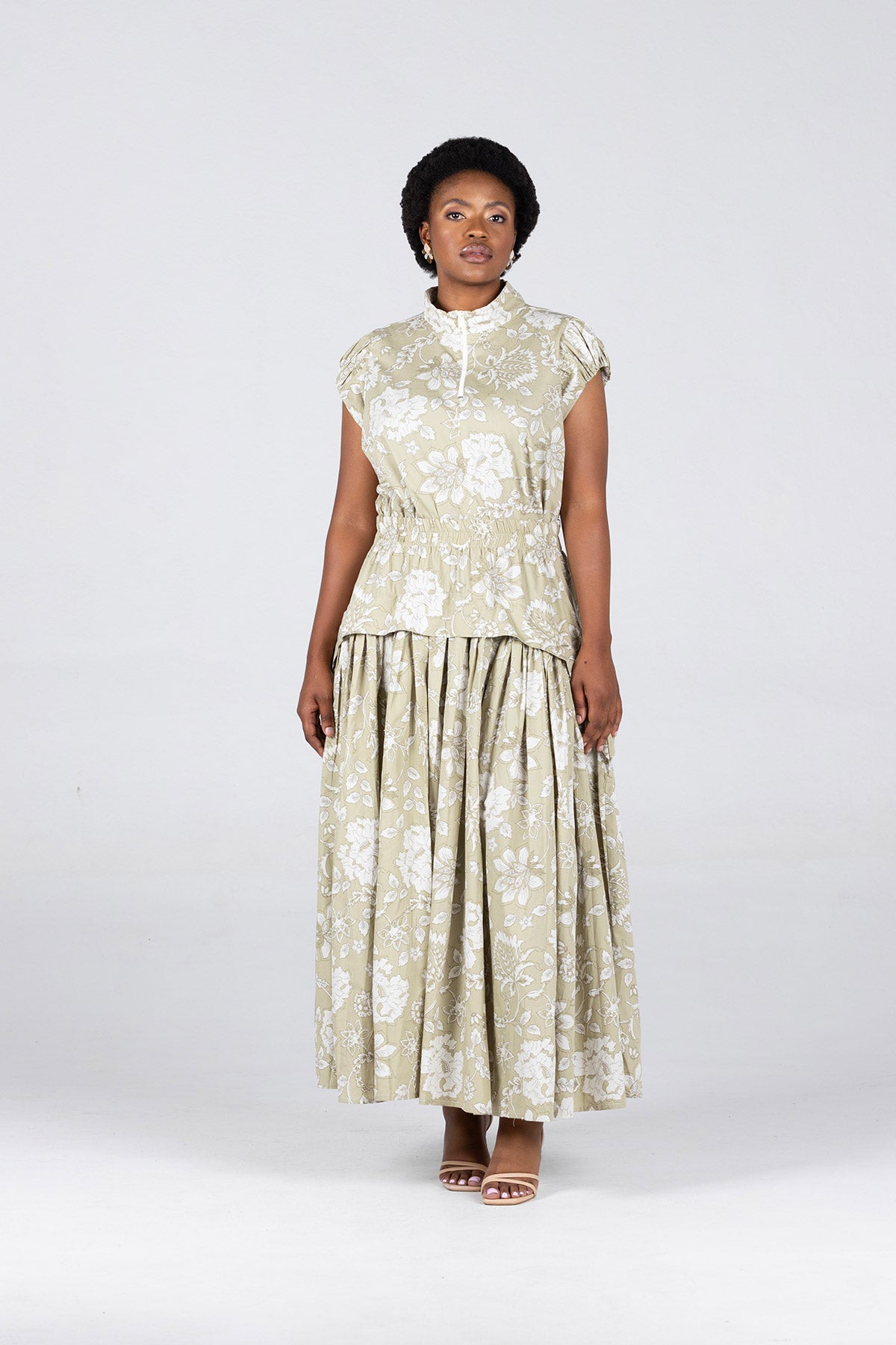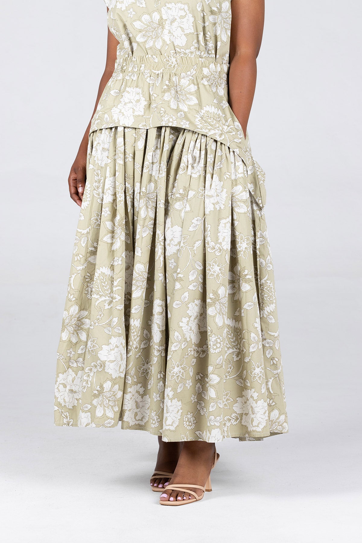 Colleen Eitzen Stone Cotton Floral Cat Skirt
