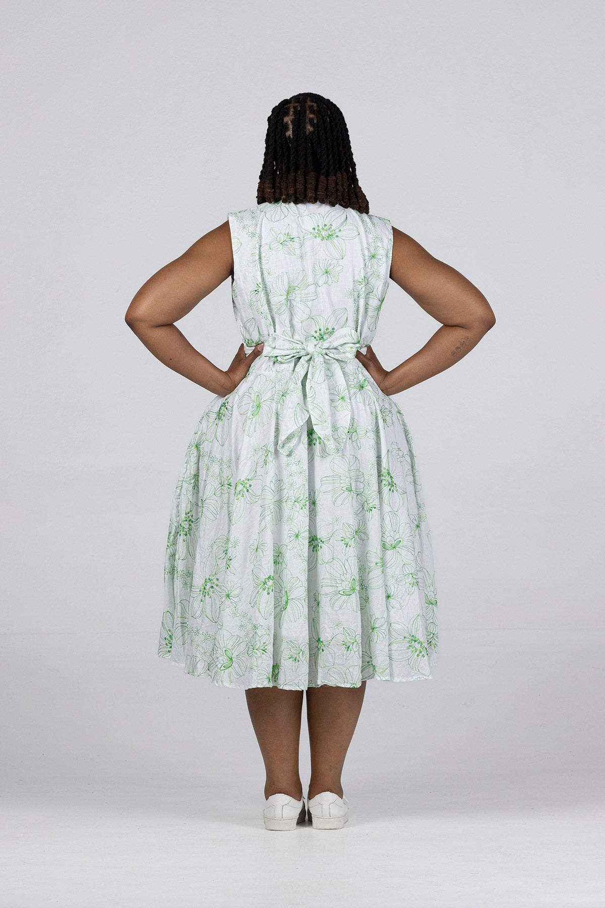 Michelle Linen Dress in White with Splashes of Green