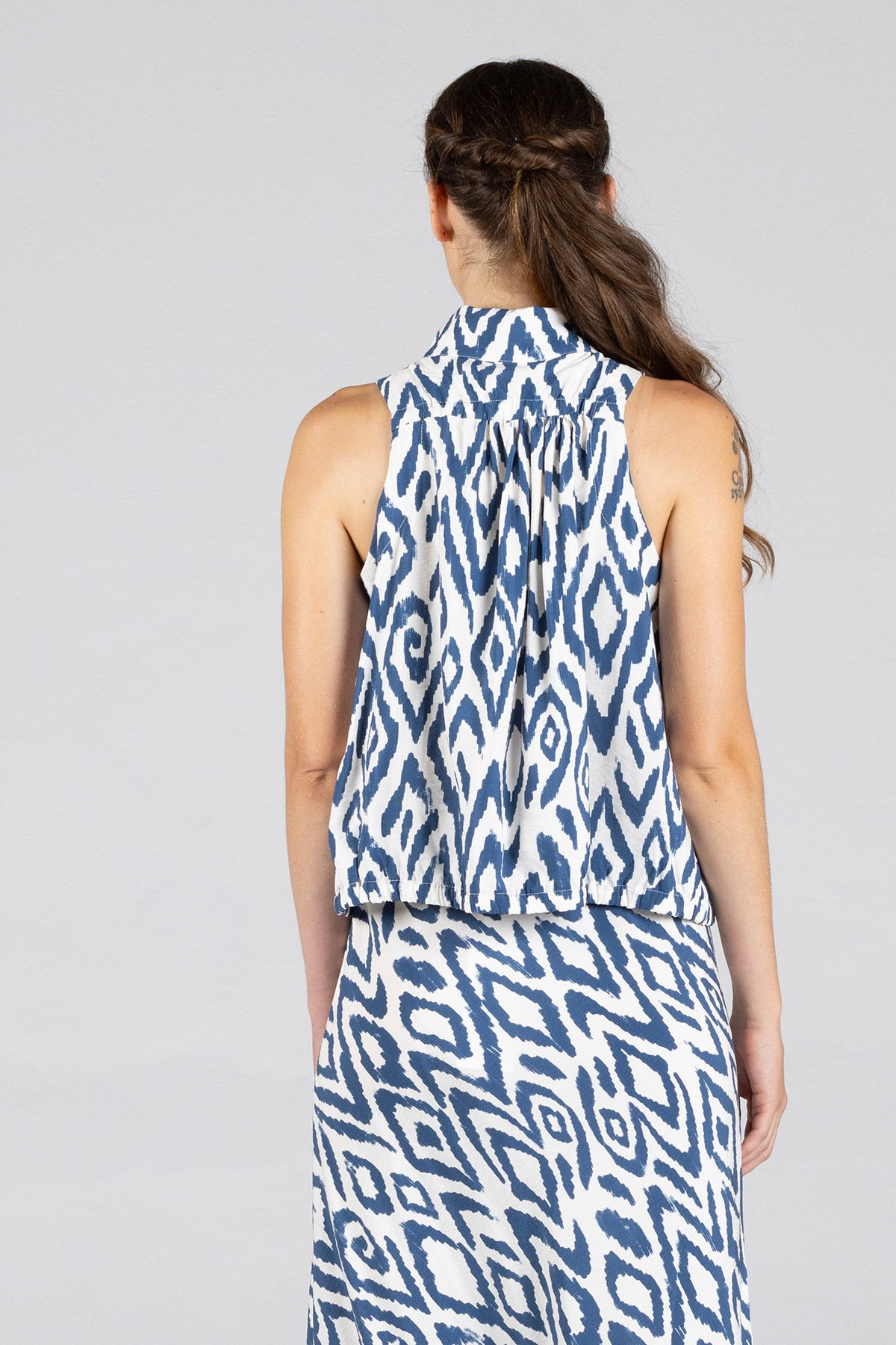 The Colleen Eitzen Saskia Top combines contemporary elegance with distinctive design. This limited edition piece features a soft cotton-feel fabric that drapes beautifully against the skin. The halter neckline creates a refined silhouette, while the sleeveless cut offers versatile styling options. A functional front zip allows adjustability. Cut to hip length, this sophisticated top transitions seamlessly from day to evening wear, making it an essential addition to any curated wardrobe.