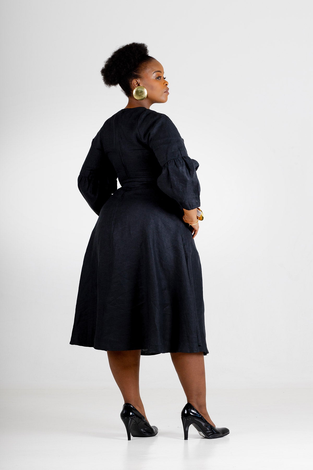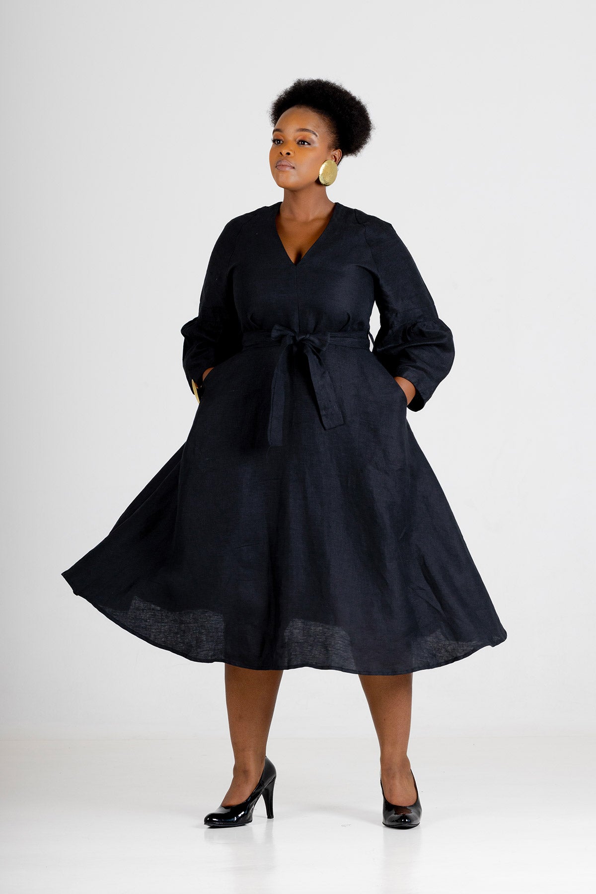 Crafted from 100% linen in a rich black slub weave, Musgrave has a naturally textured finish that brings depth to its minimalist design. The breathable, durable fabric softens beautifully over time while maintaining its shape. Available in sizes 32 to 46, the dress is designed to fit comfortably and stylishly across a range of body types. To care for it, machine wash cold on a gentle cycle, avoid bleach, and line dry or lay flat. A warm iron may be used to smooth the natural texture of the linen.