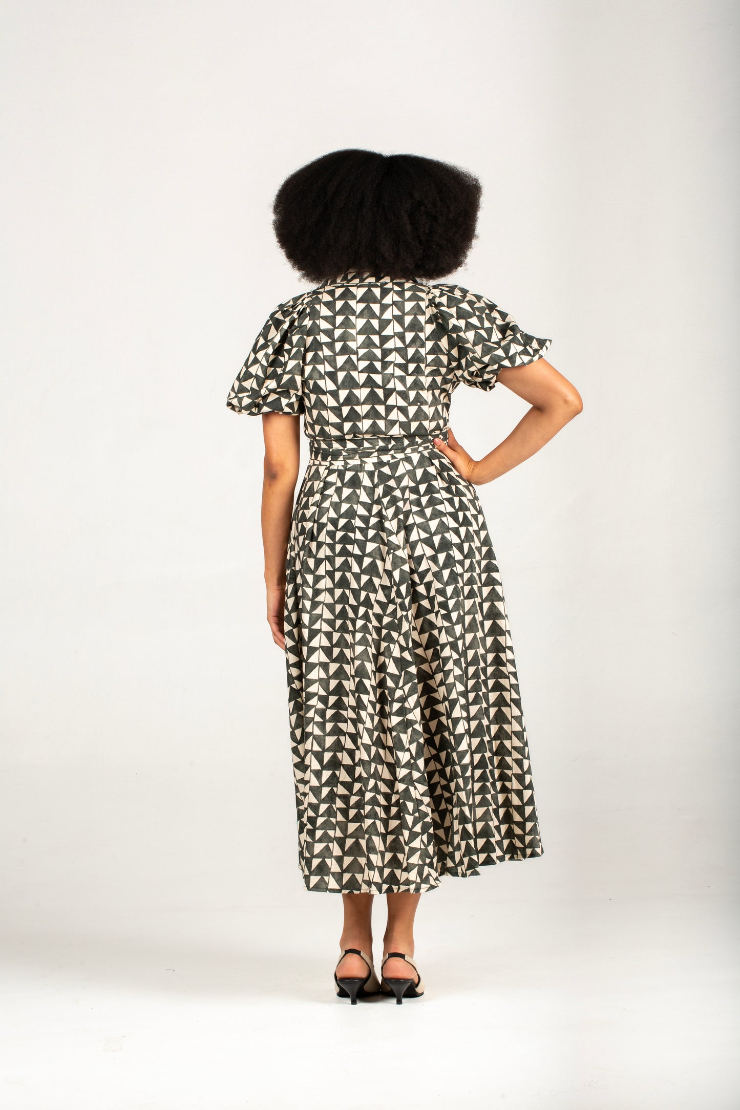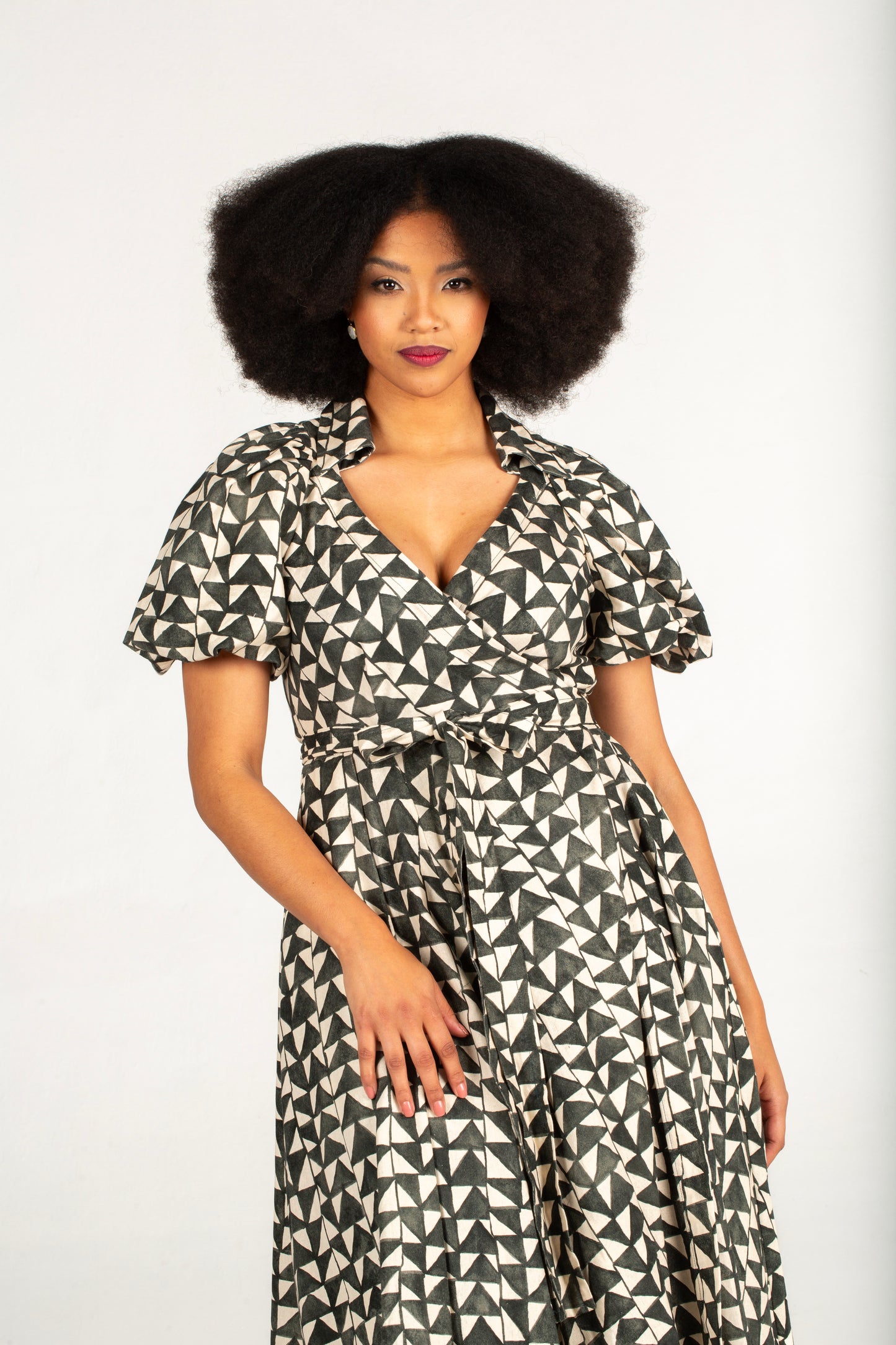 The Essenwood is a stunning midi-length wrap dress that combines style and comfort effortlessly. The one-piece collar adds a touch of refinement, while the voluminous puff sleeves and pleated skirt create a sense of movement and grace. With side entry pockets, this dress is the epitome of elegance.