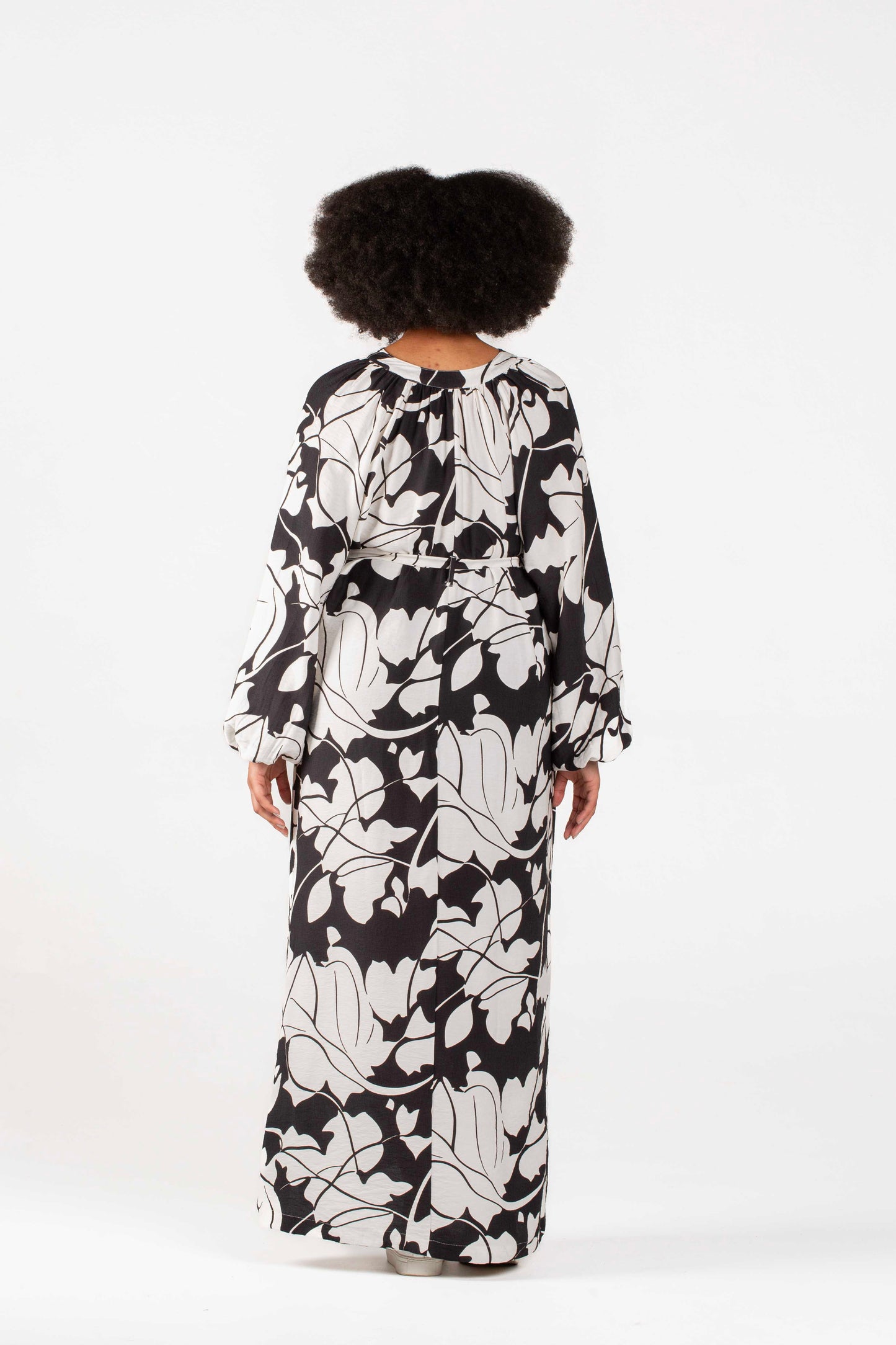 Cut in a Black/White abstract print from a breathable blend of 88% rayon and 12% nylon, the Pine dress offers a soft drape with a hint of structure. The lightweight fabric makes it a versatile choice across seasons. Available in sizes 32 to 46, it’s designed to flatter while maintaining a sense of ease and comfort. To care for the garment, machine wash cold on a gentle cycle using mild detergent, and line dry or lay flat. A cool iron may be used to smooth the fabric.