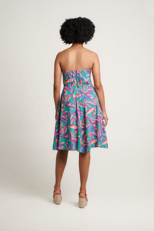 The A-line skirt exudes sophistication, while the center back zip ensures a flawless fit. And for added convenience, Silverton features side entry pockets to carry your essentials. Crafted from a luxurious linen rayon blend in an eye-catching Emerald/Pink/Fuchsia/Blue floral pattern, it offers both comfort and style.