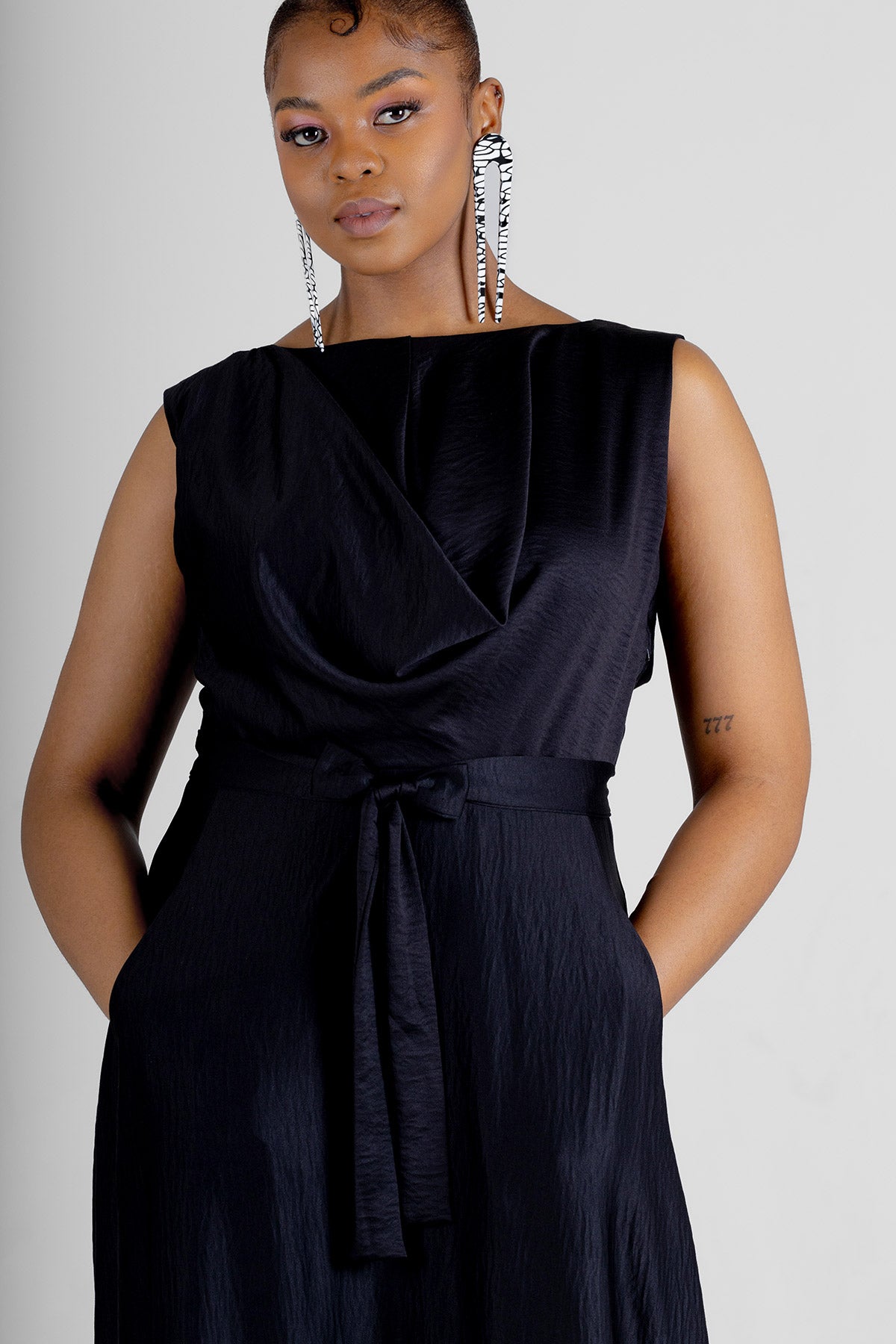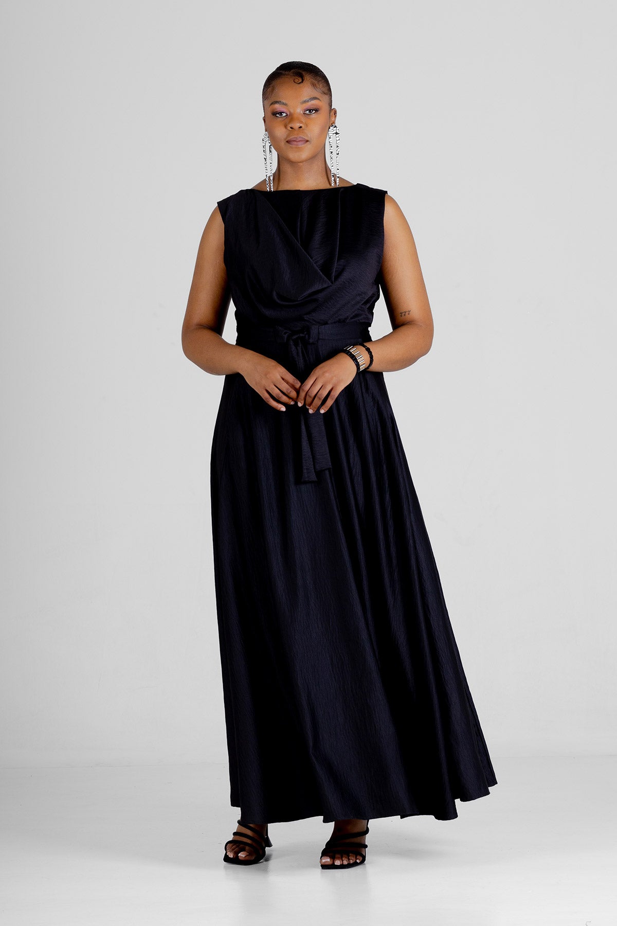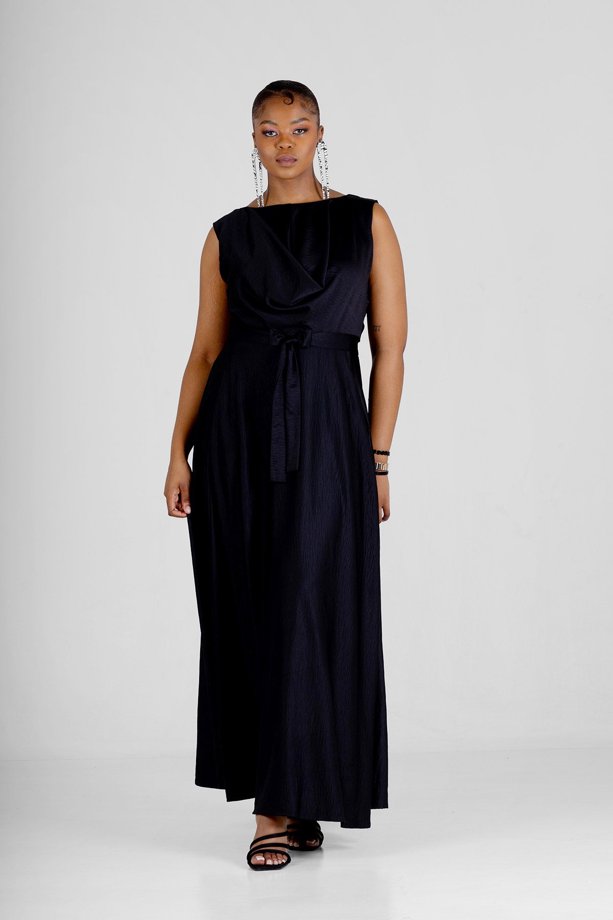 The epitome of effortless glamour and sophistication, the Stamford. This sleeveless maxi dress is designed to make a statement with its stylish details and elegant silhouette. Stamford features a beautifully draped top that adds a touch of artistry and grace. The self-tie belt cinches the waist for a flattering fit, while the side entry pockets provide both functionality and a modern twist.