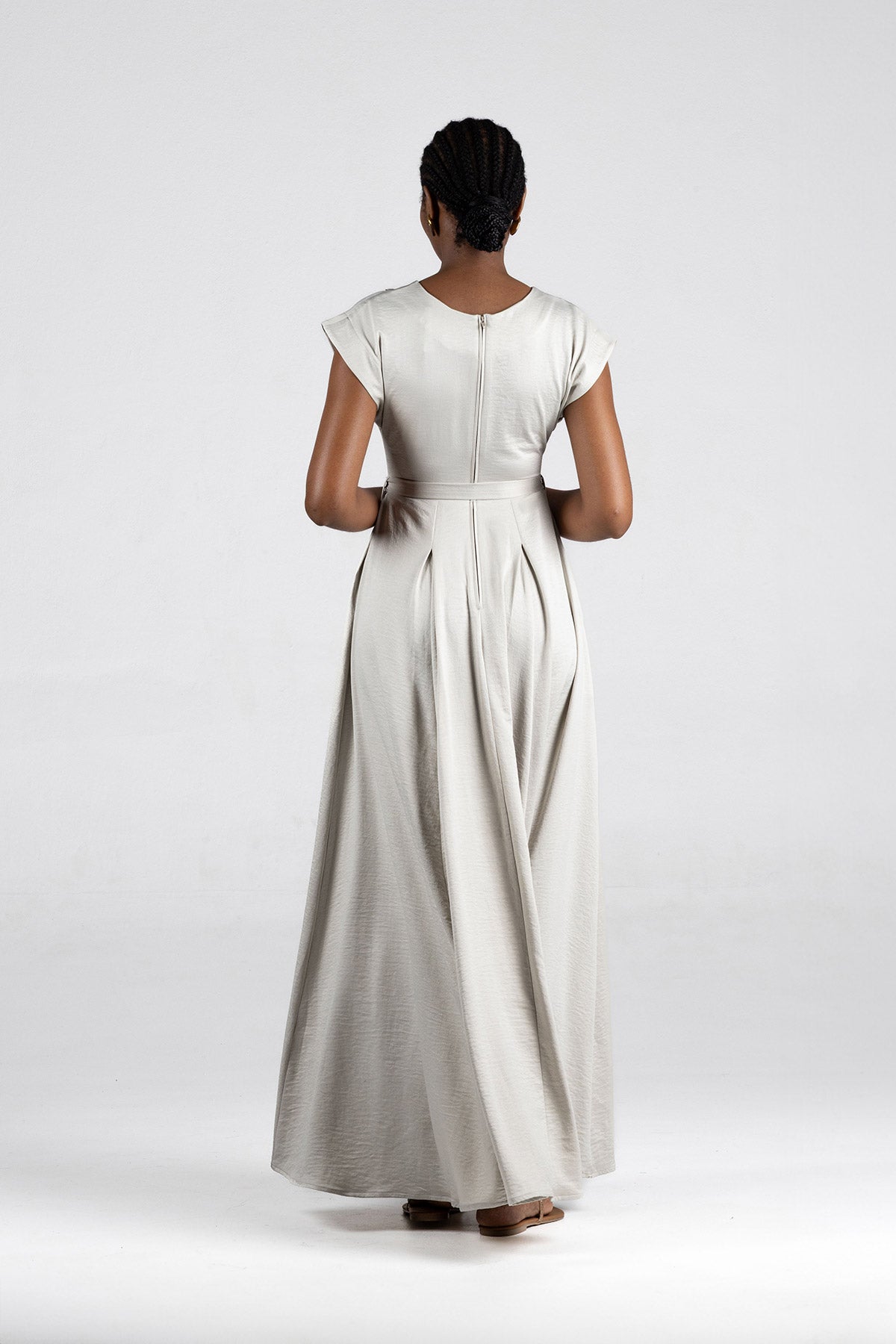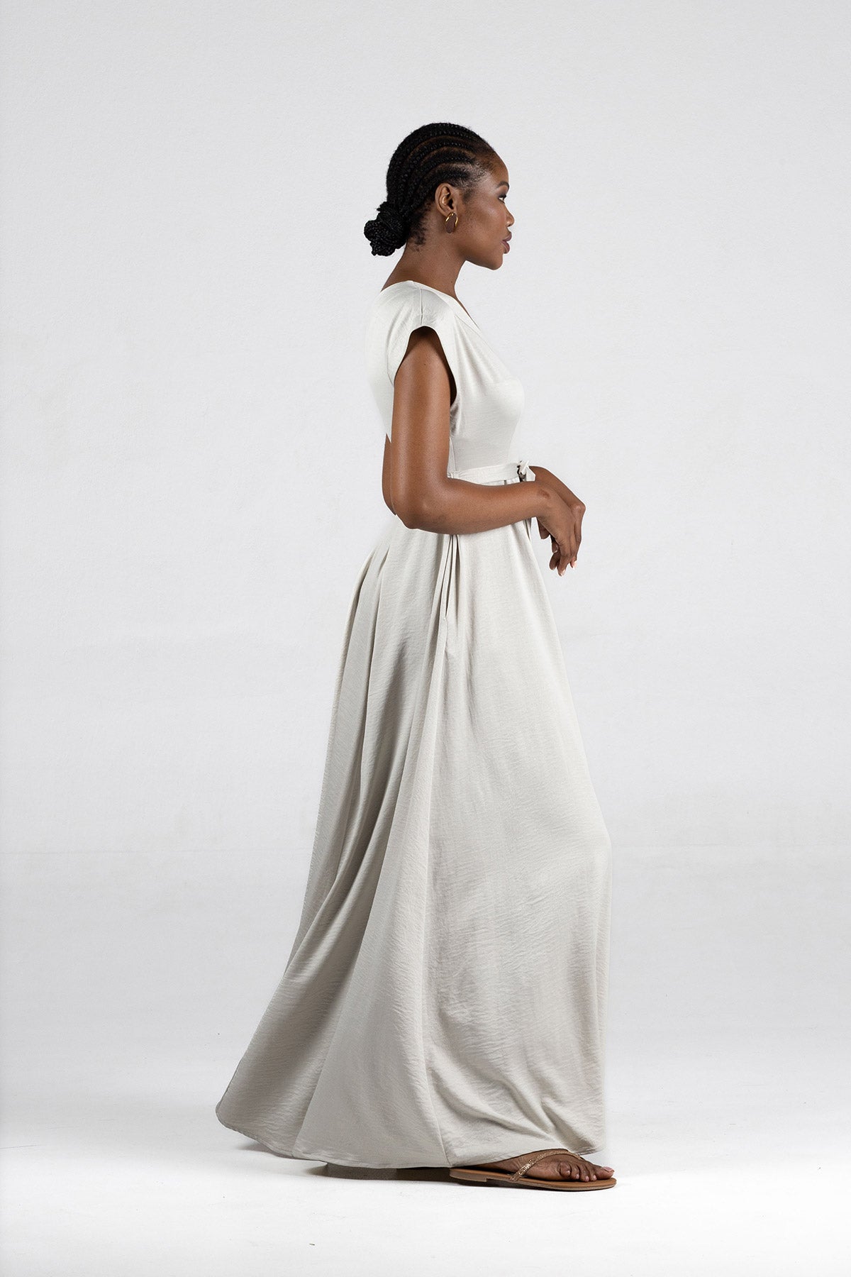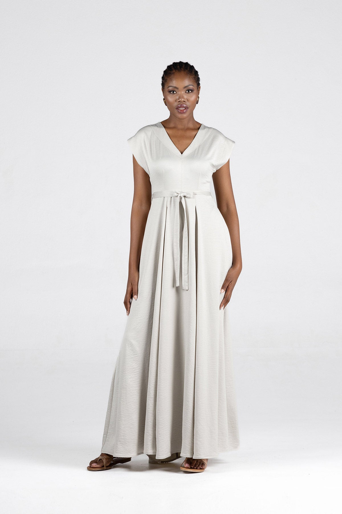 - Elegant maxi-length silhouette with fluid movement