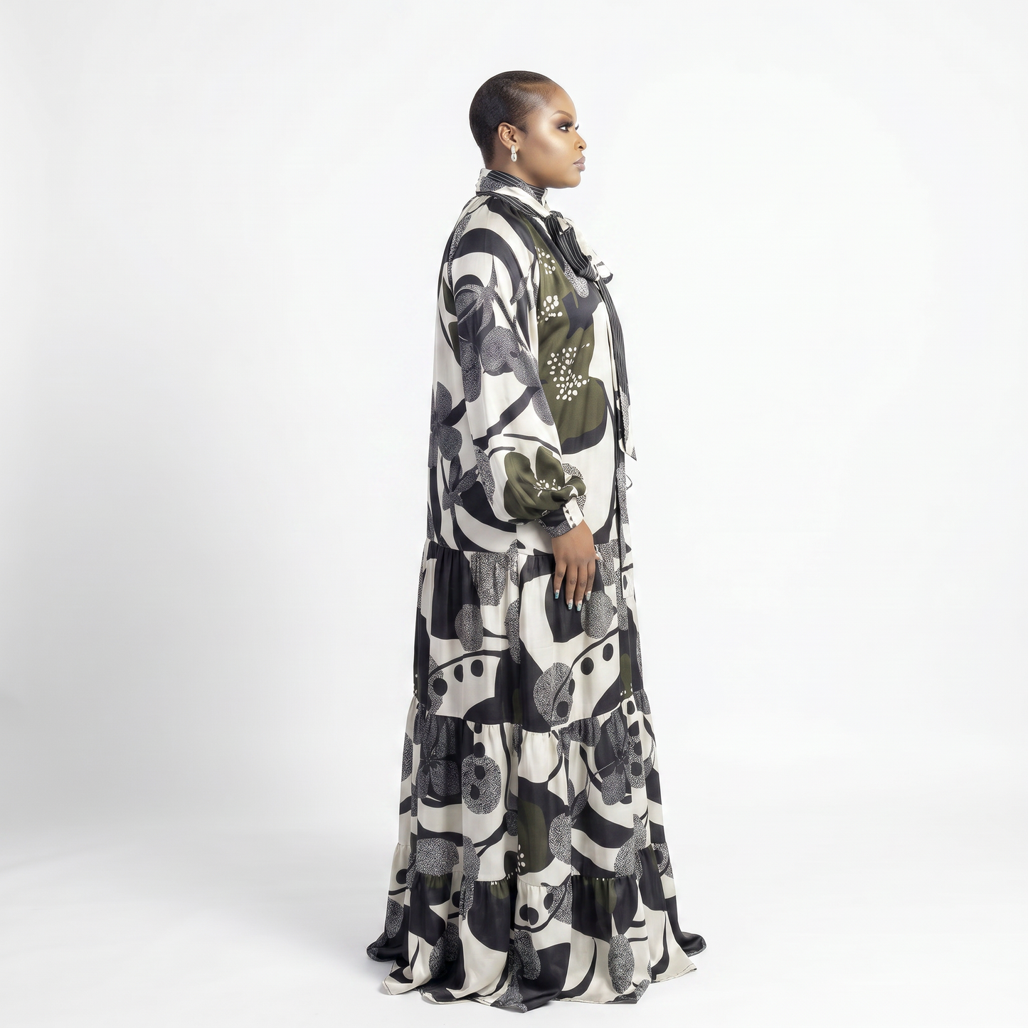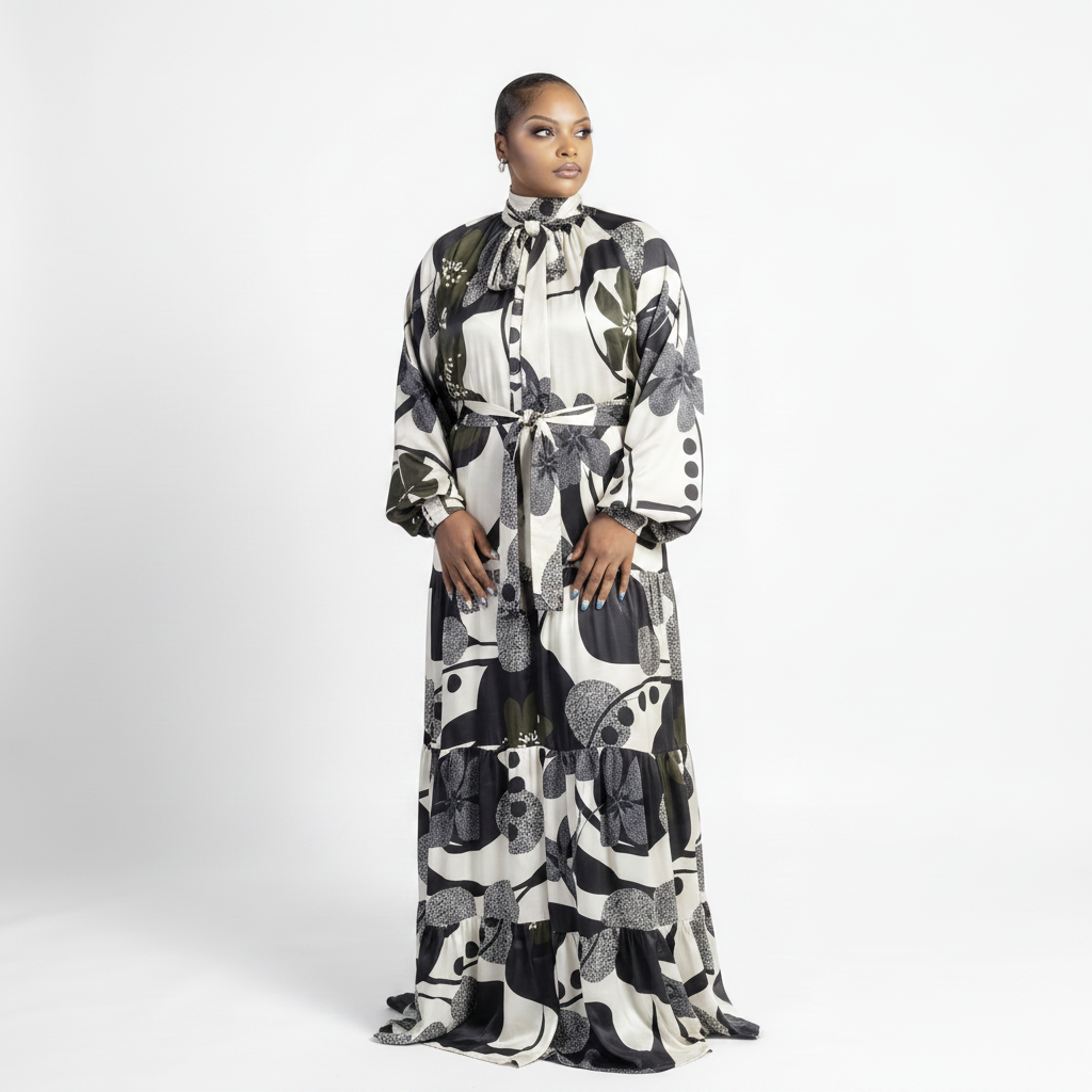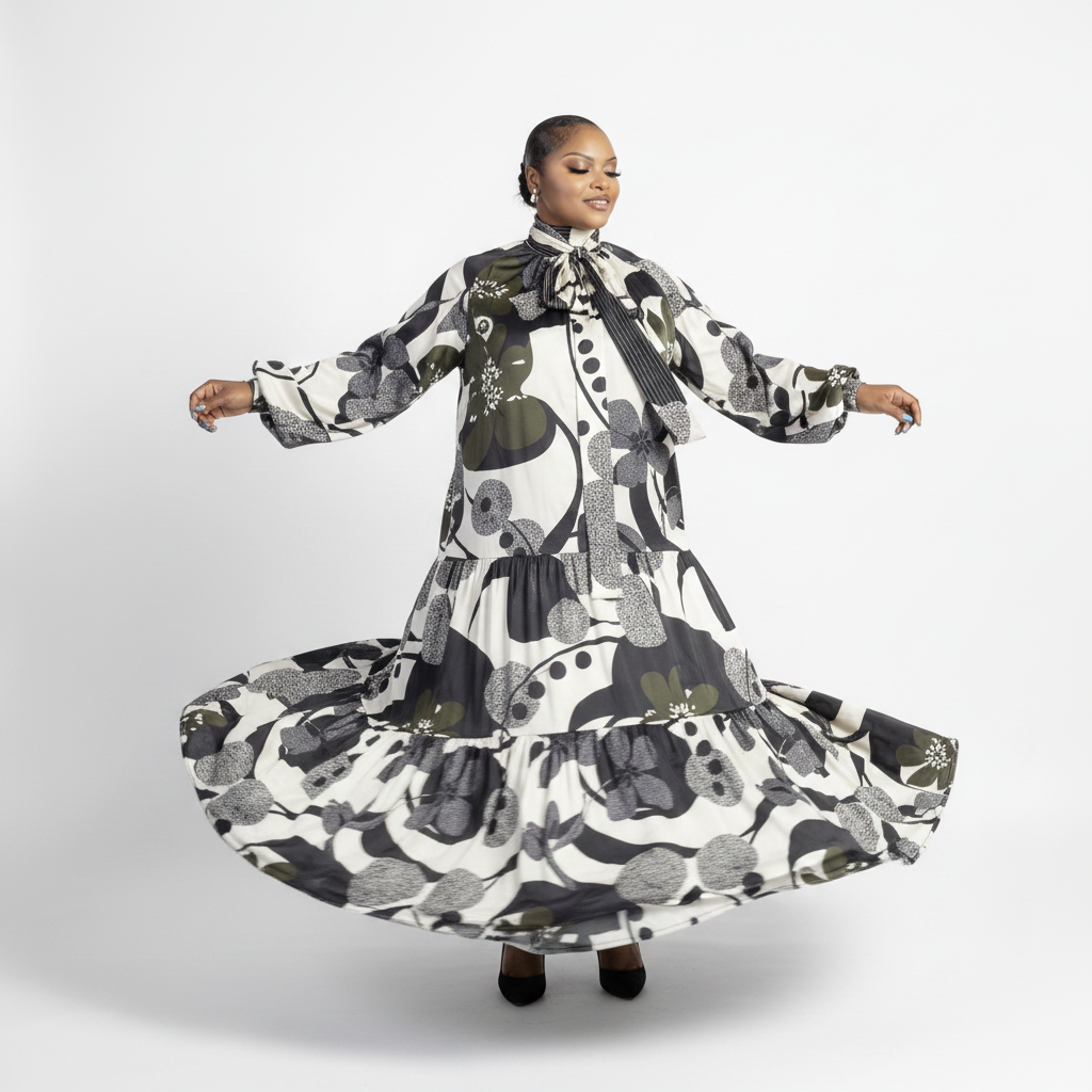 - Flowing tiered design creates graceful movement with every step
