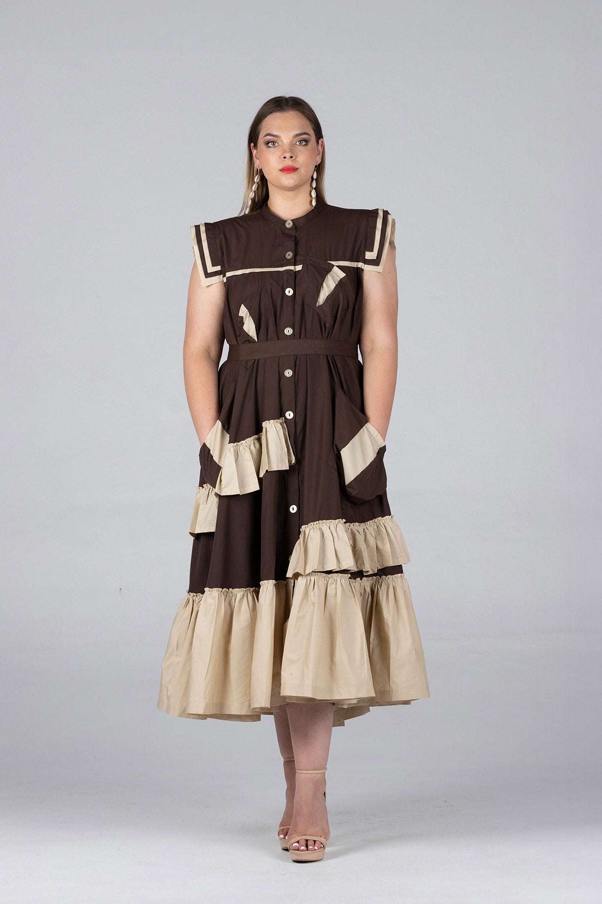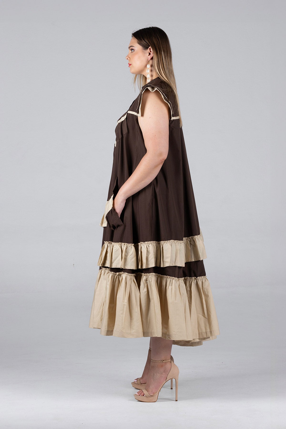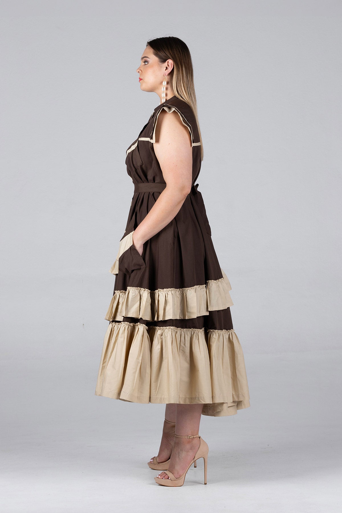Frida Brown/Stone Maxi Frilled Naomi Dress