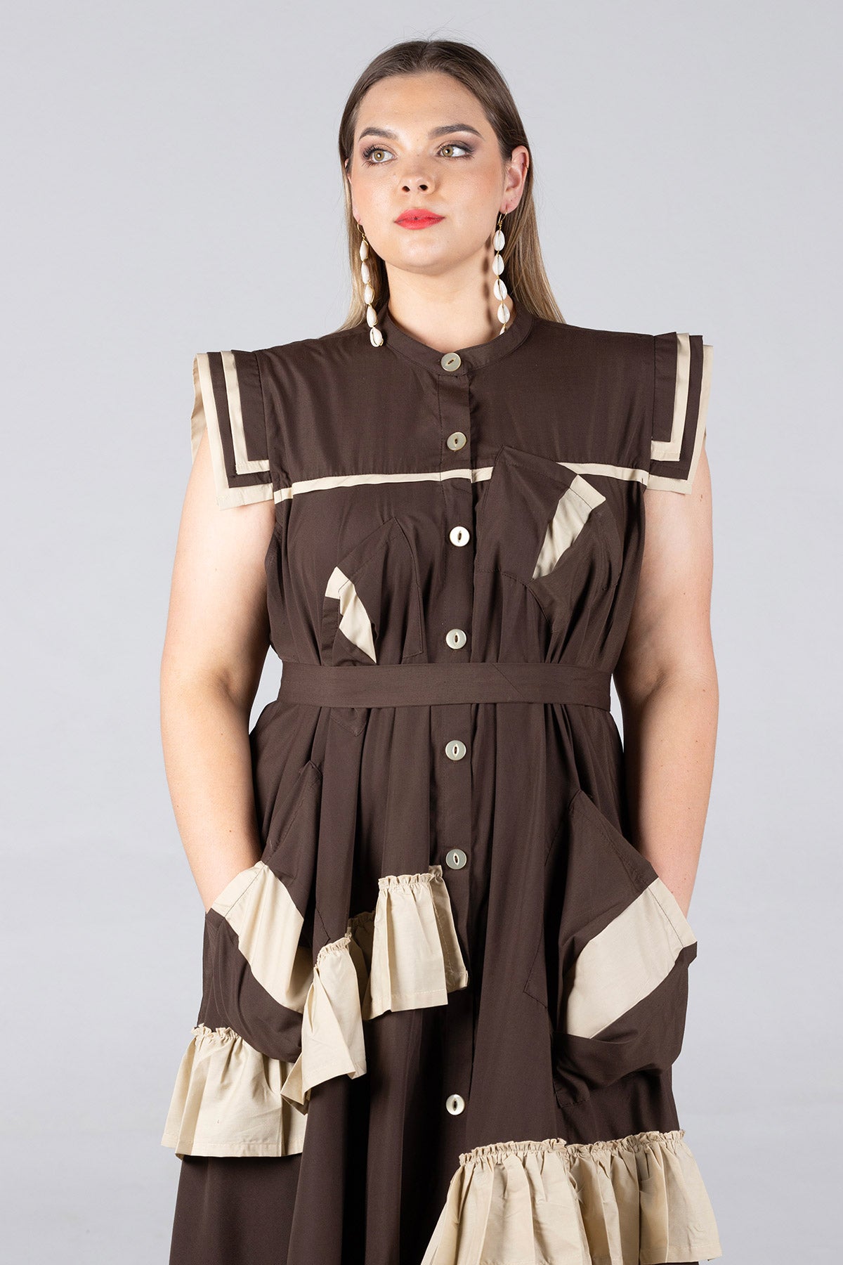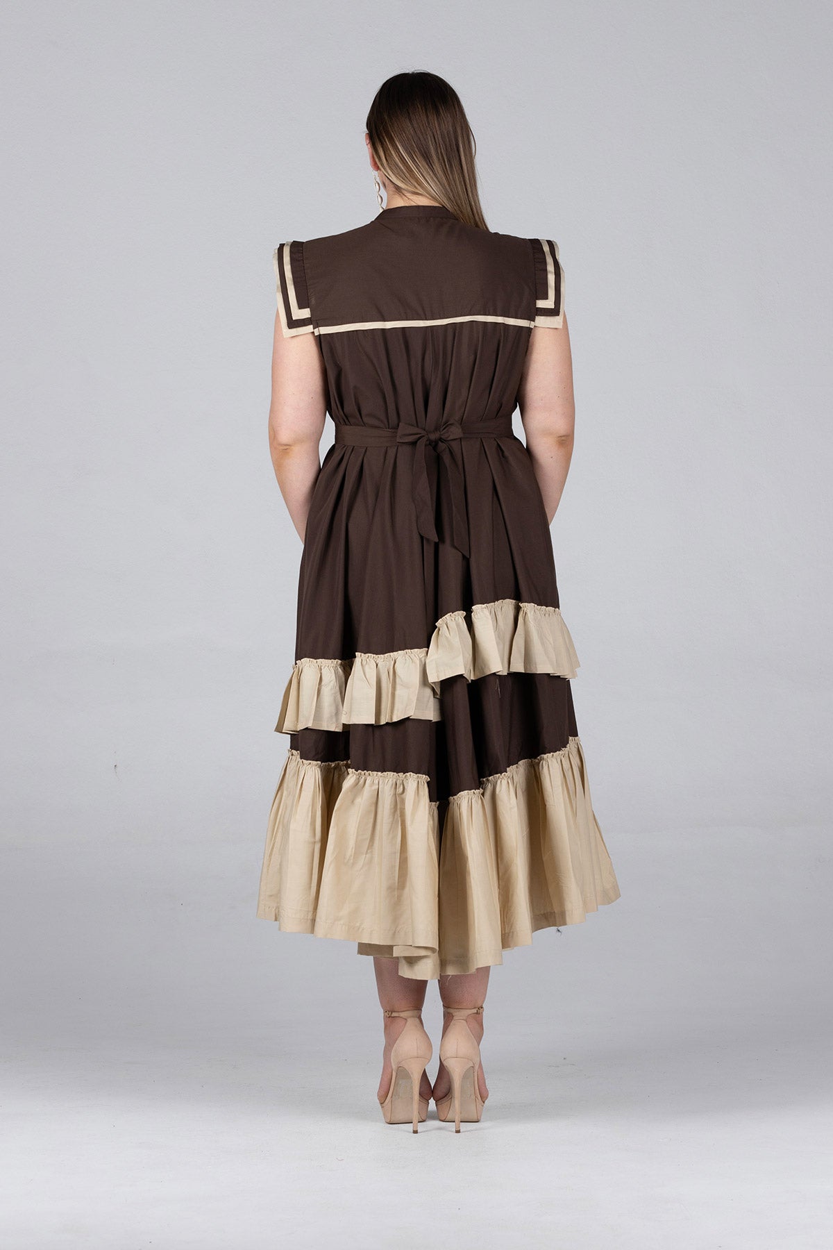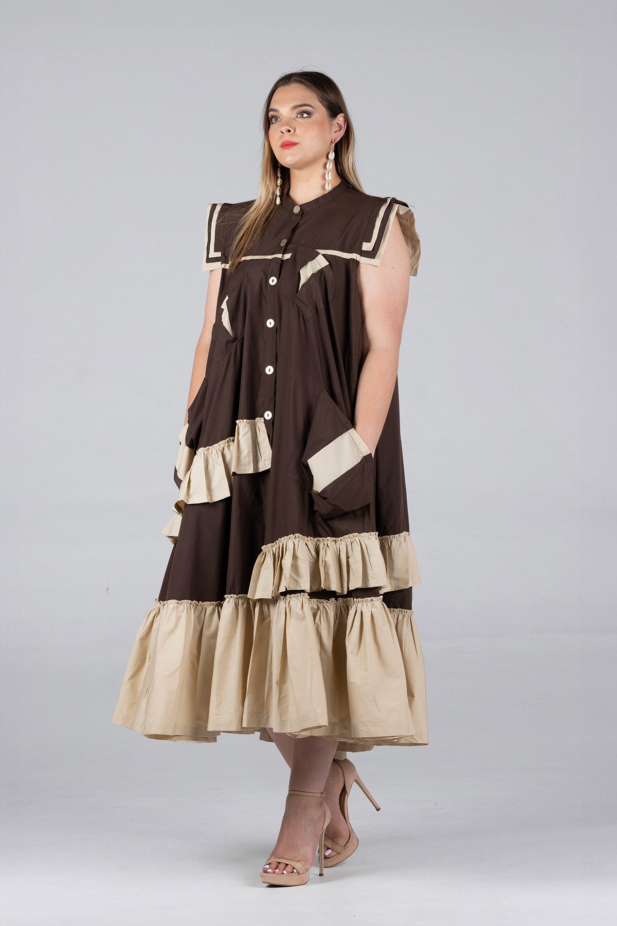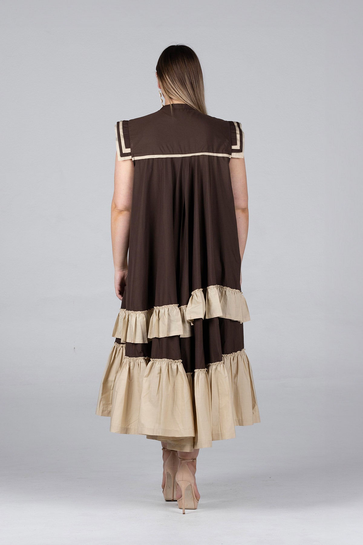 Frida Brown/Stone Maxi Frilled Naomi Dress