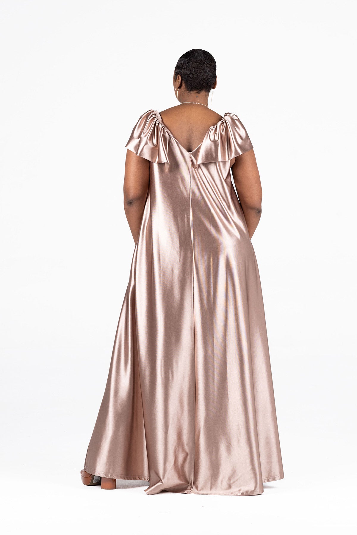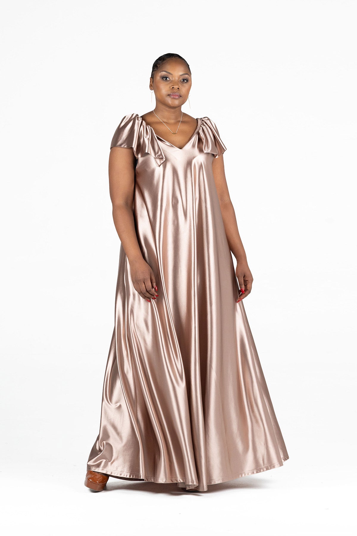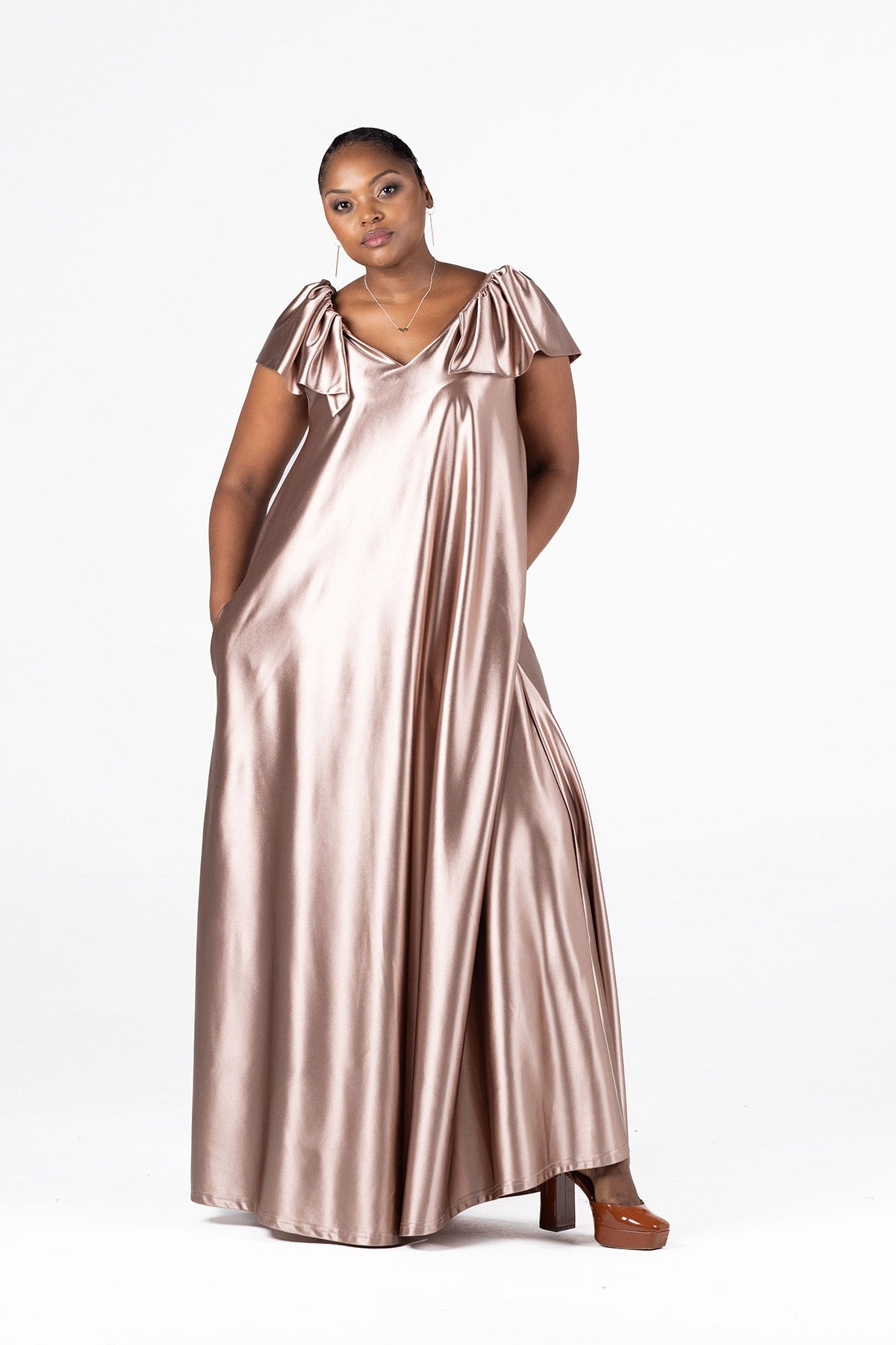- Elegant maxi dress in a rich espresso tone for a timeless, refined look